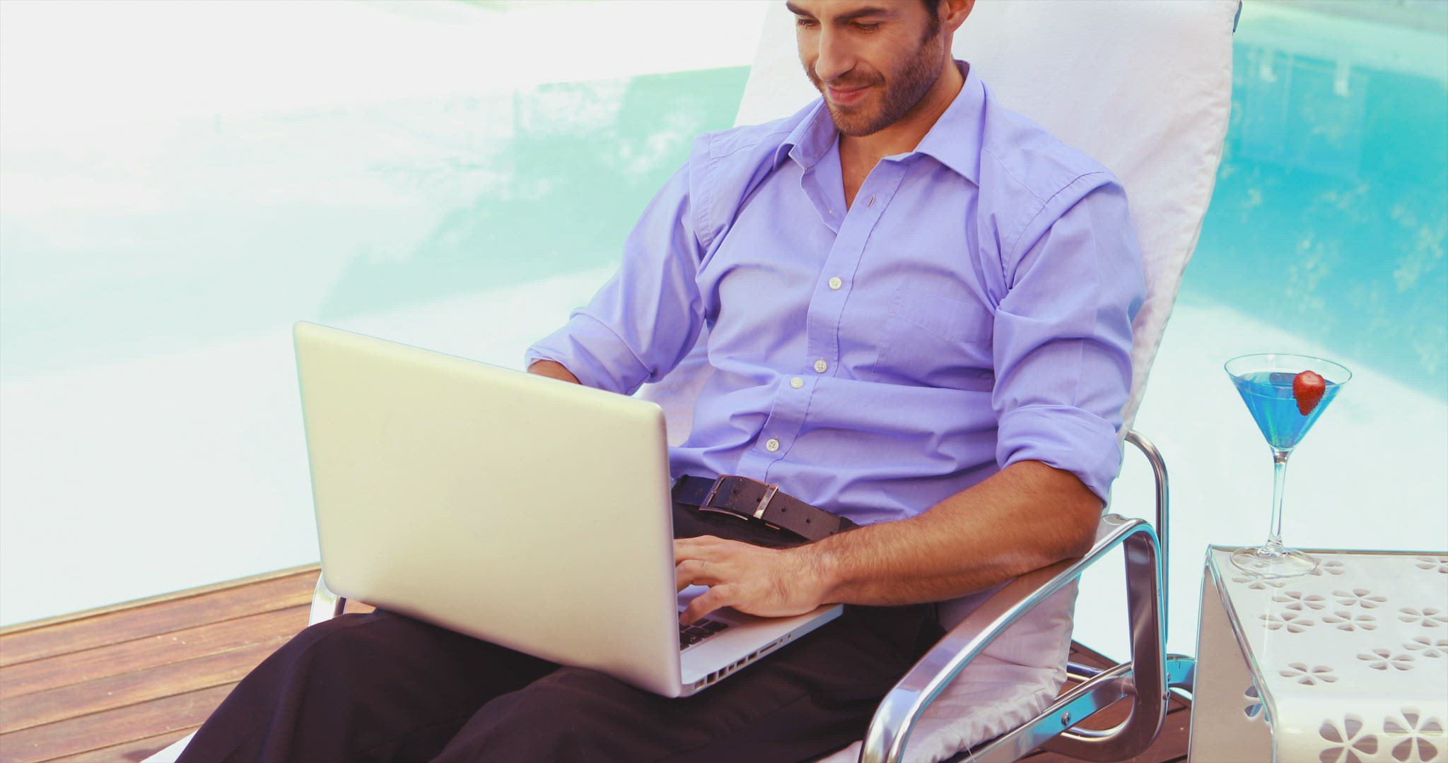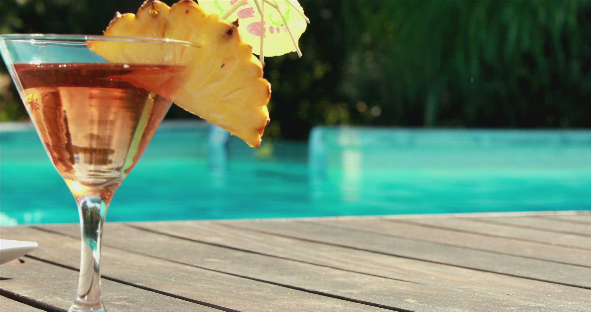 Gorgeous blonde in bikini enjoying a cocktail poolside