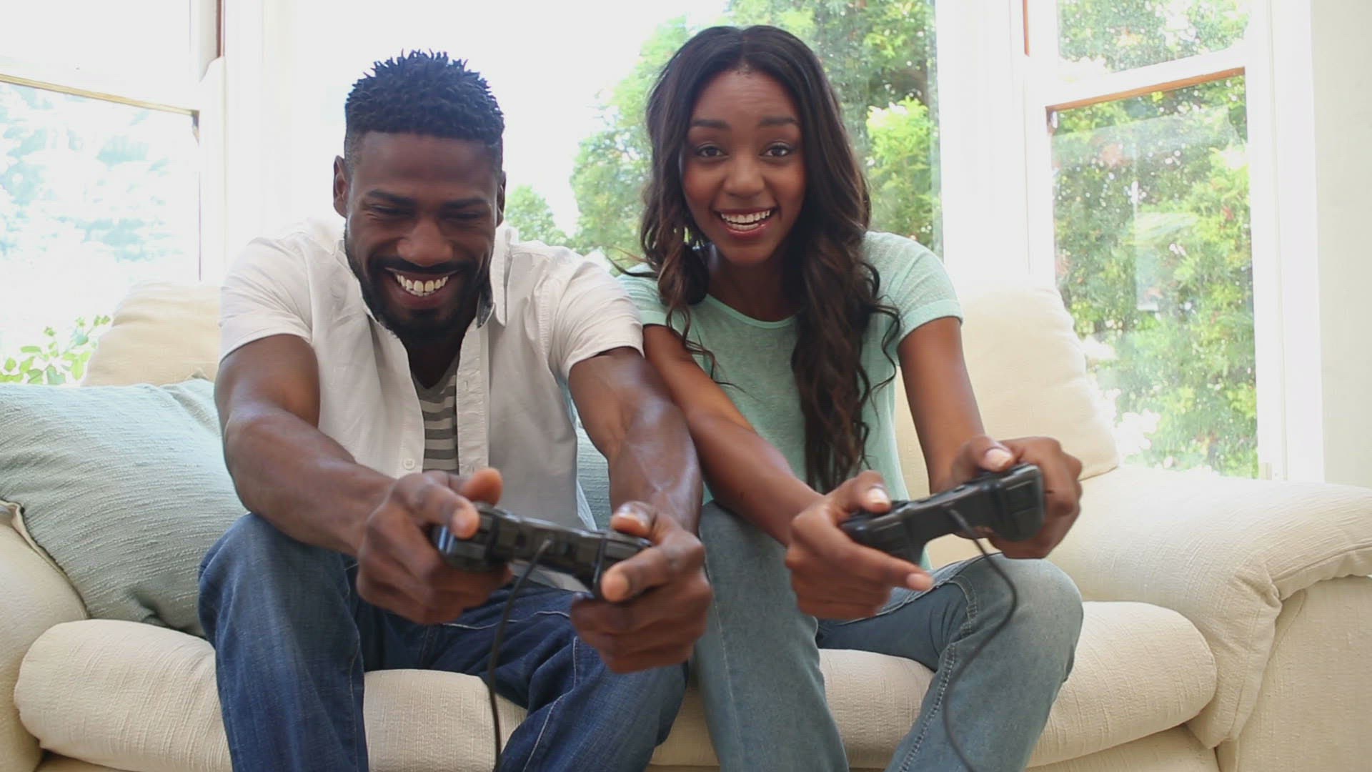 Happy family playing video games in ultra hd format