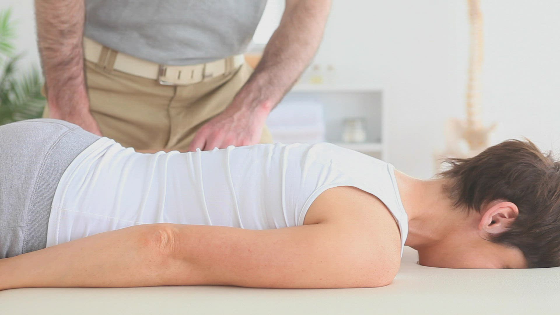 Happy doctor with spine model in high quality 4k format