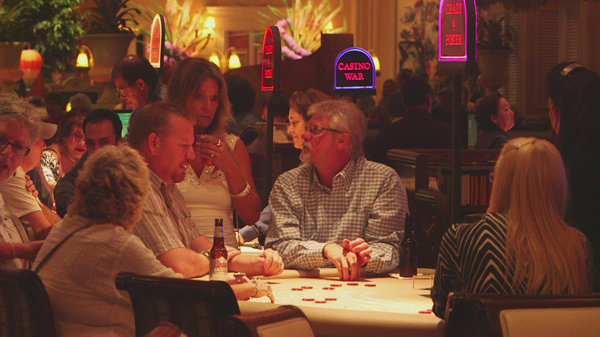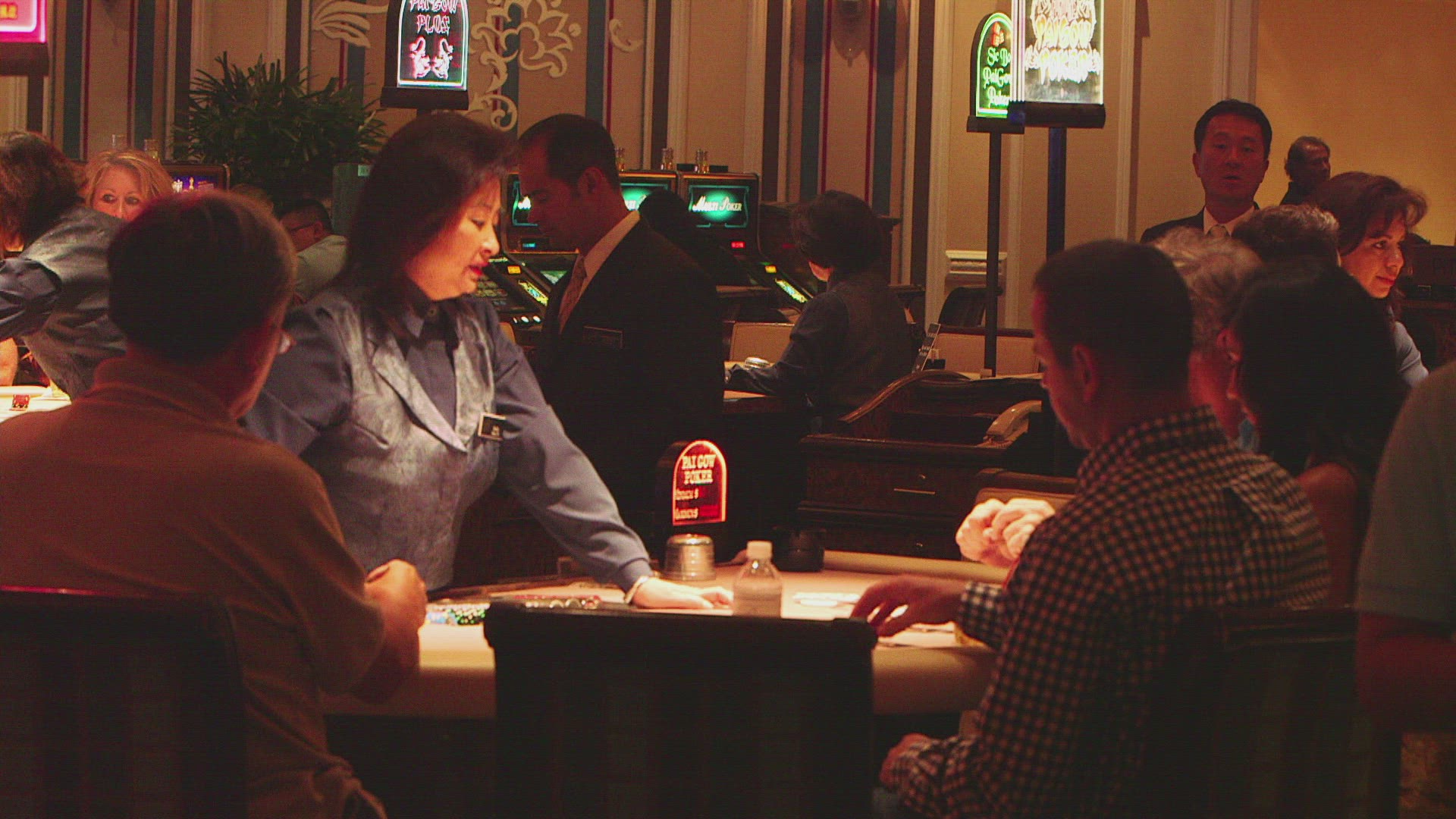 Digital animation of Media device screens showing casino scenes