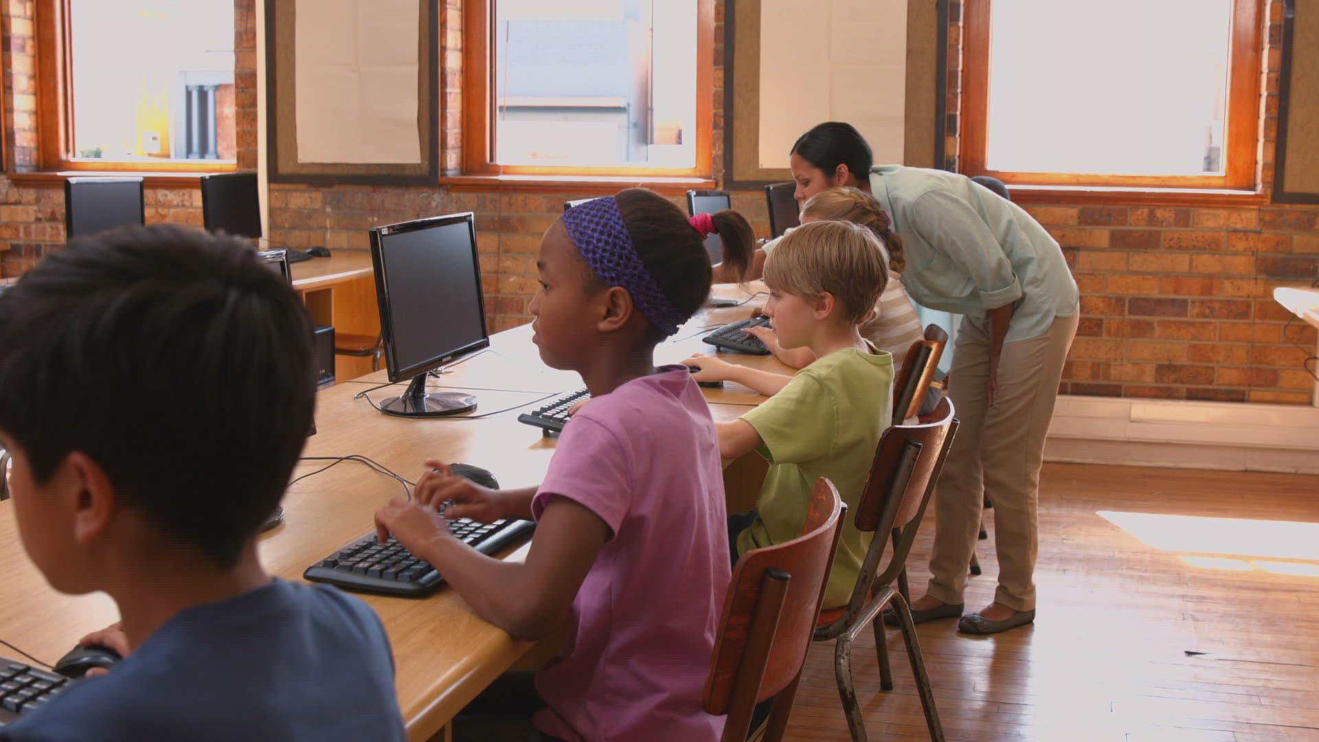 Pupils in computer class at school in ultra hd format