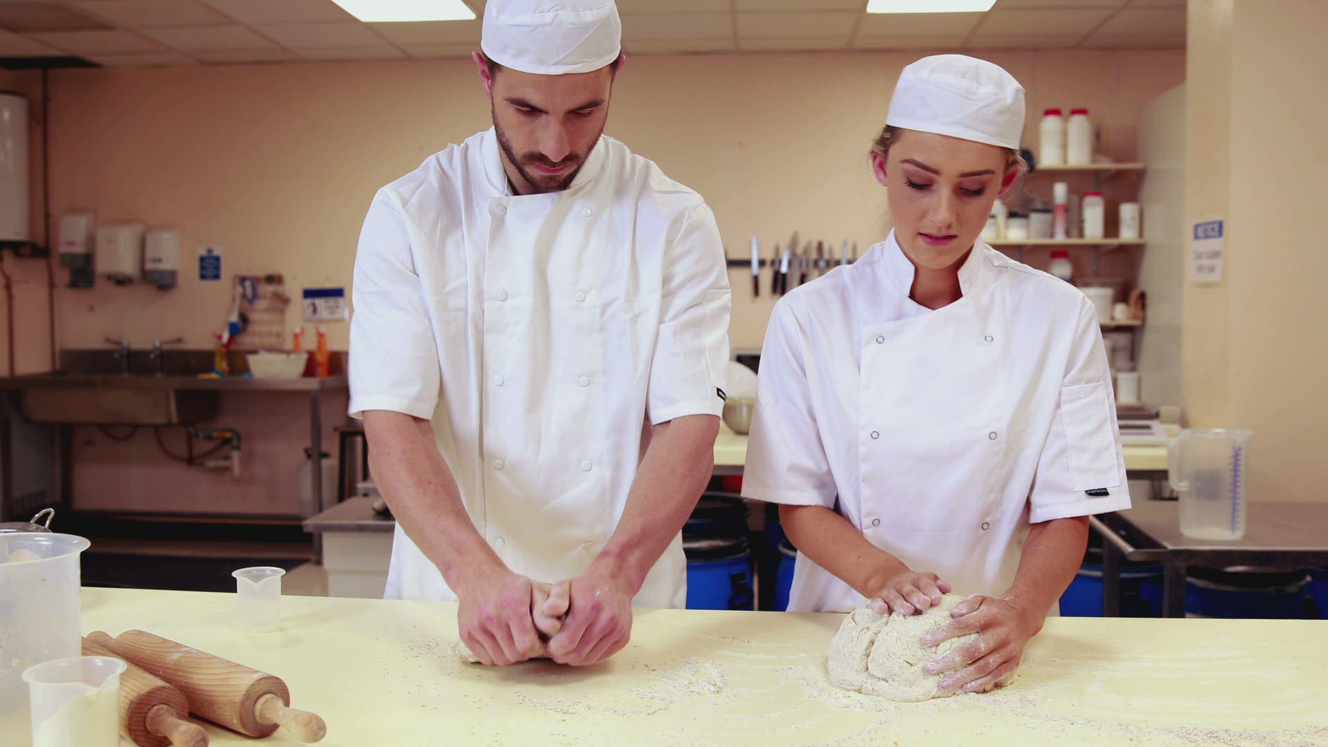 Machine producing fully kneaded dough in culinary school