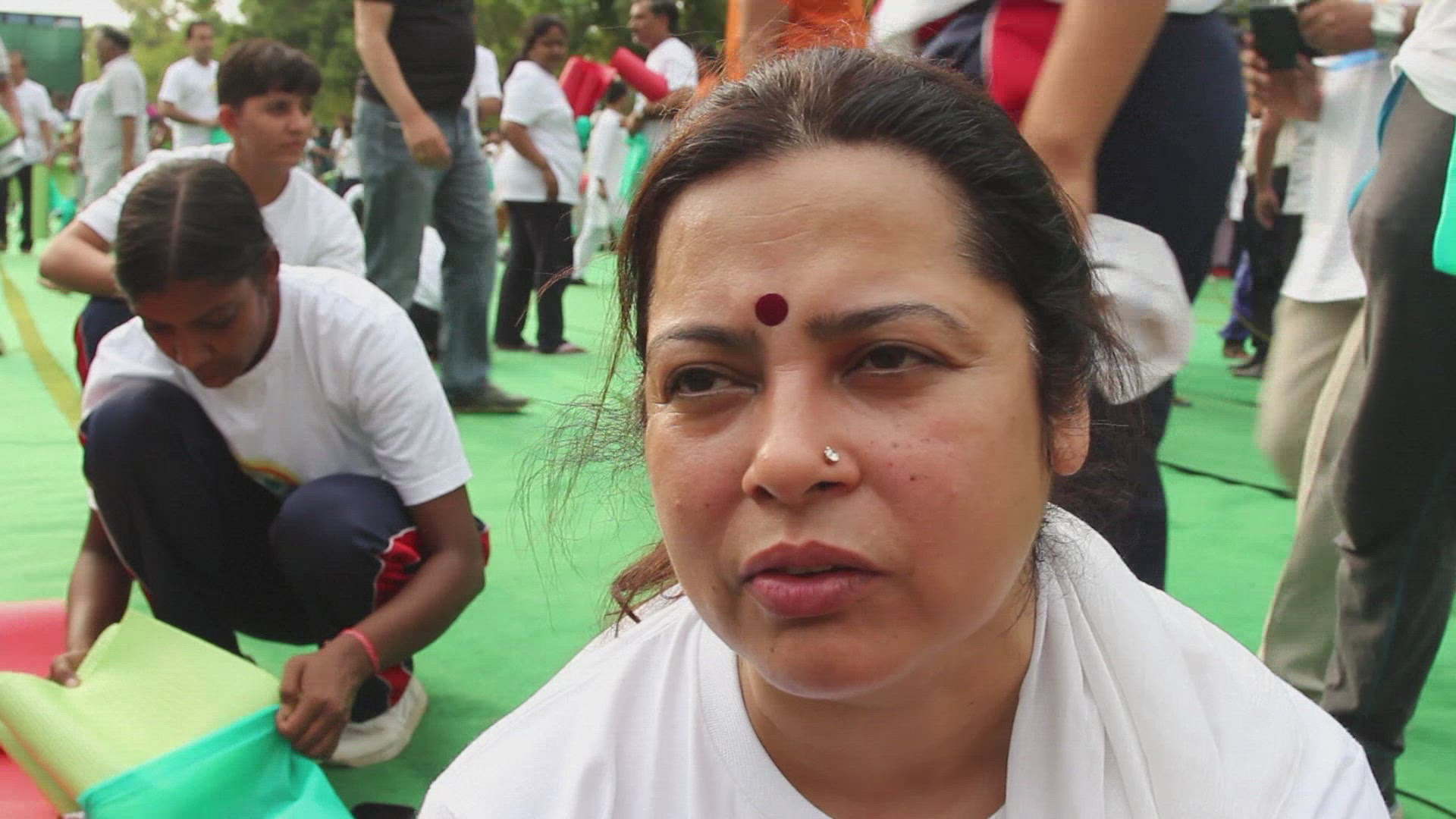 Slow motion of fitness group chatting in park on a sunny day