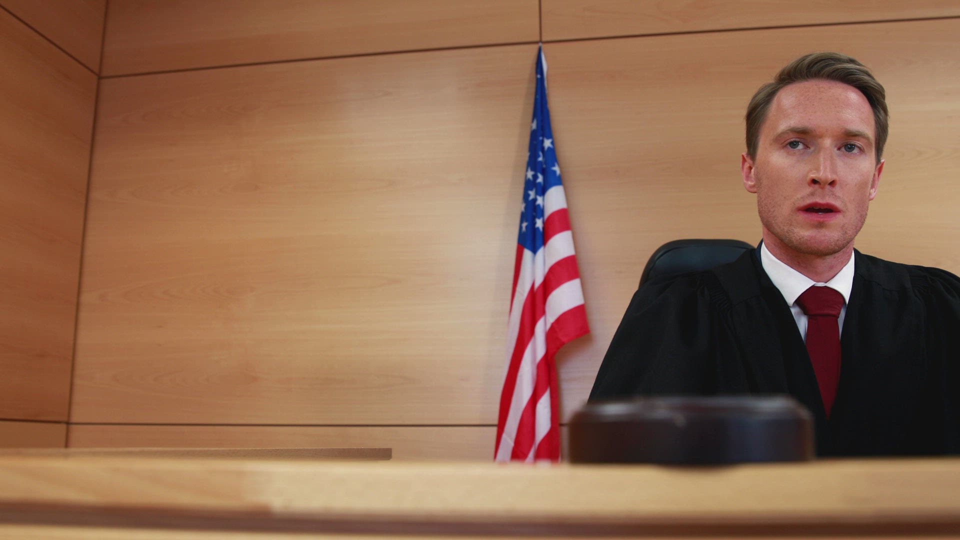 Judge calling order with gavel in american court in court room