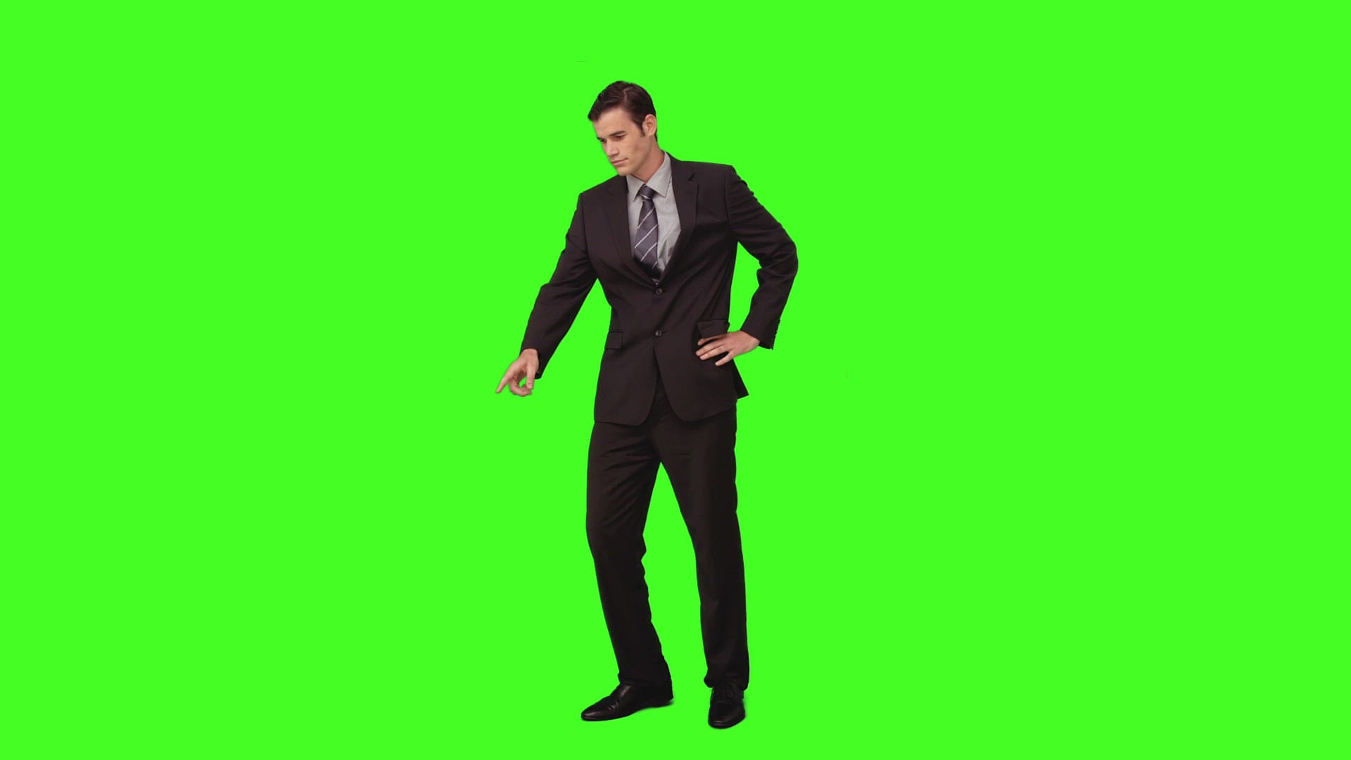 Businessman standing and looking down on green screen background