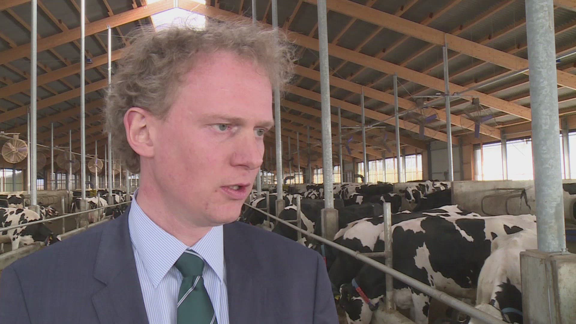 Digital animation of businessman looking at stair with an opening doors in the cloudy sky