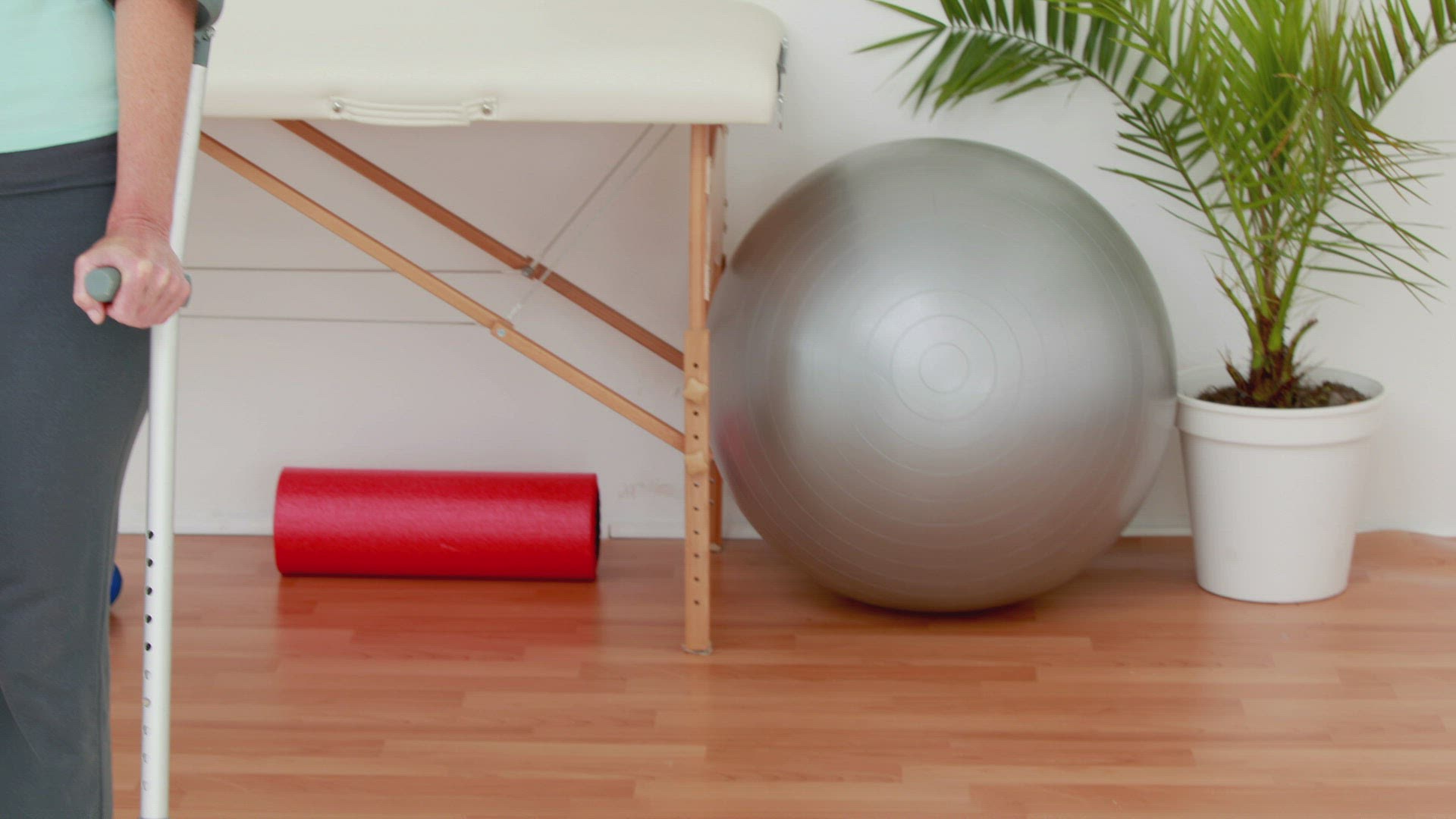 Woman putting his foot on a table while stretching her leg in a room