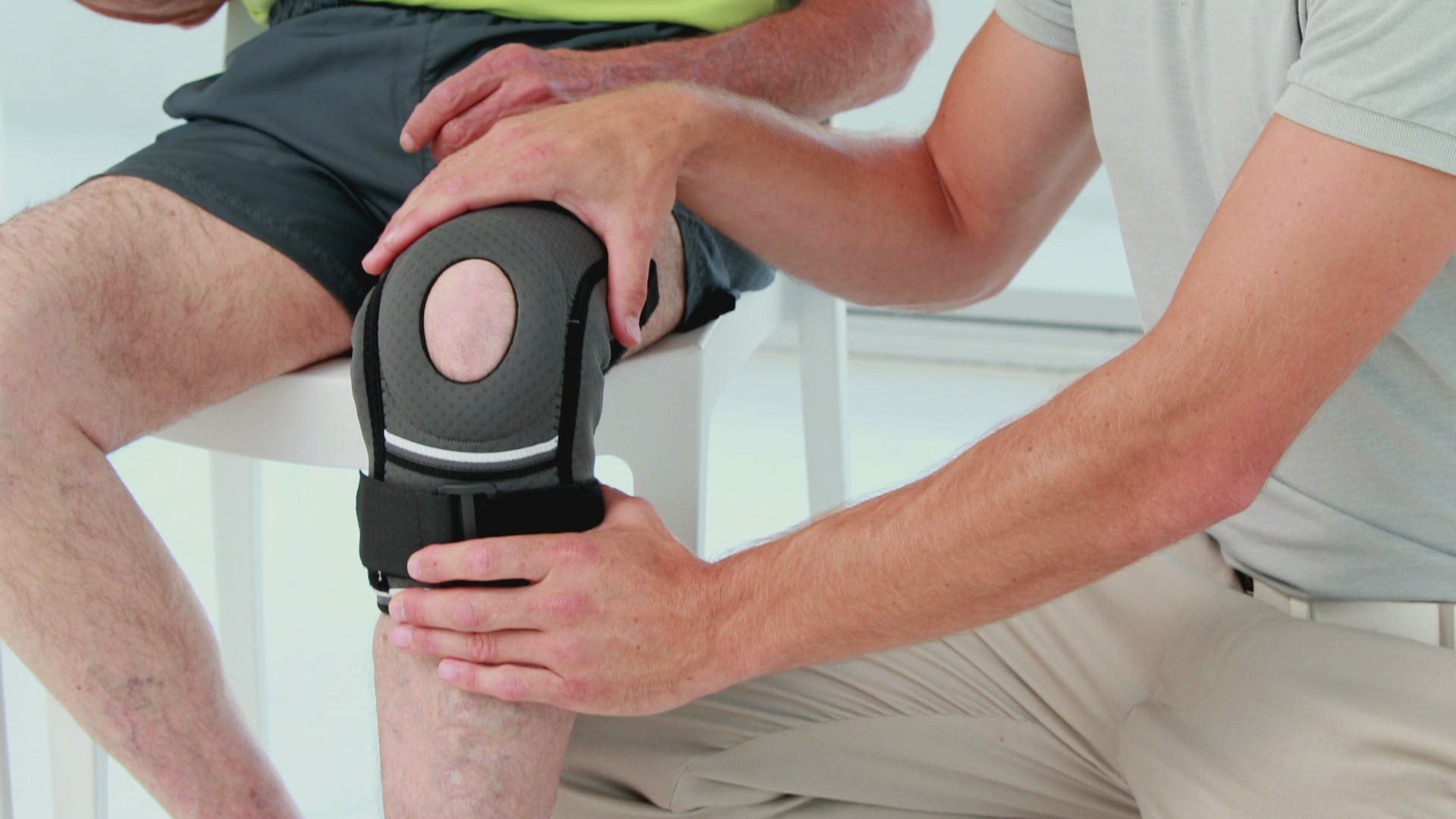 Doctor examining his patient knee in medical office
