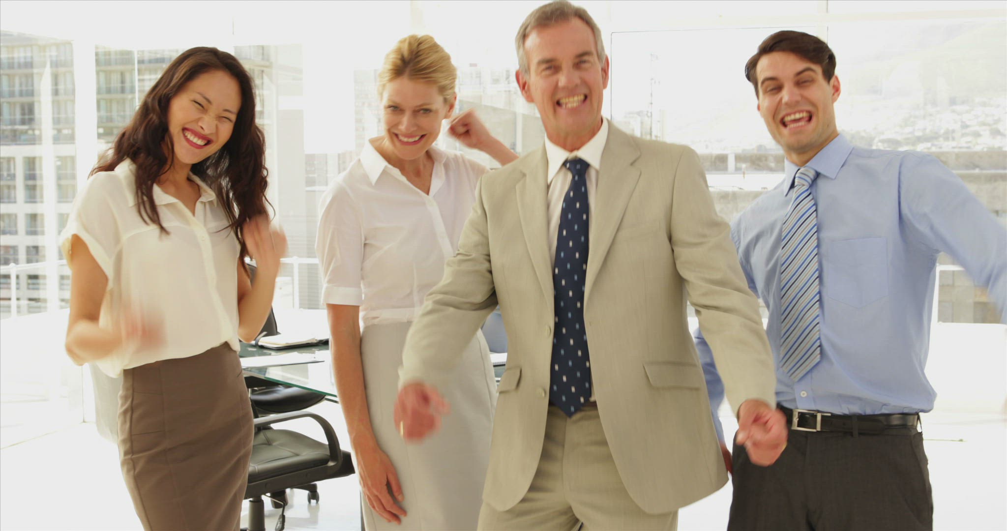 Digital animation of Businessman cheering on first place posium