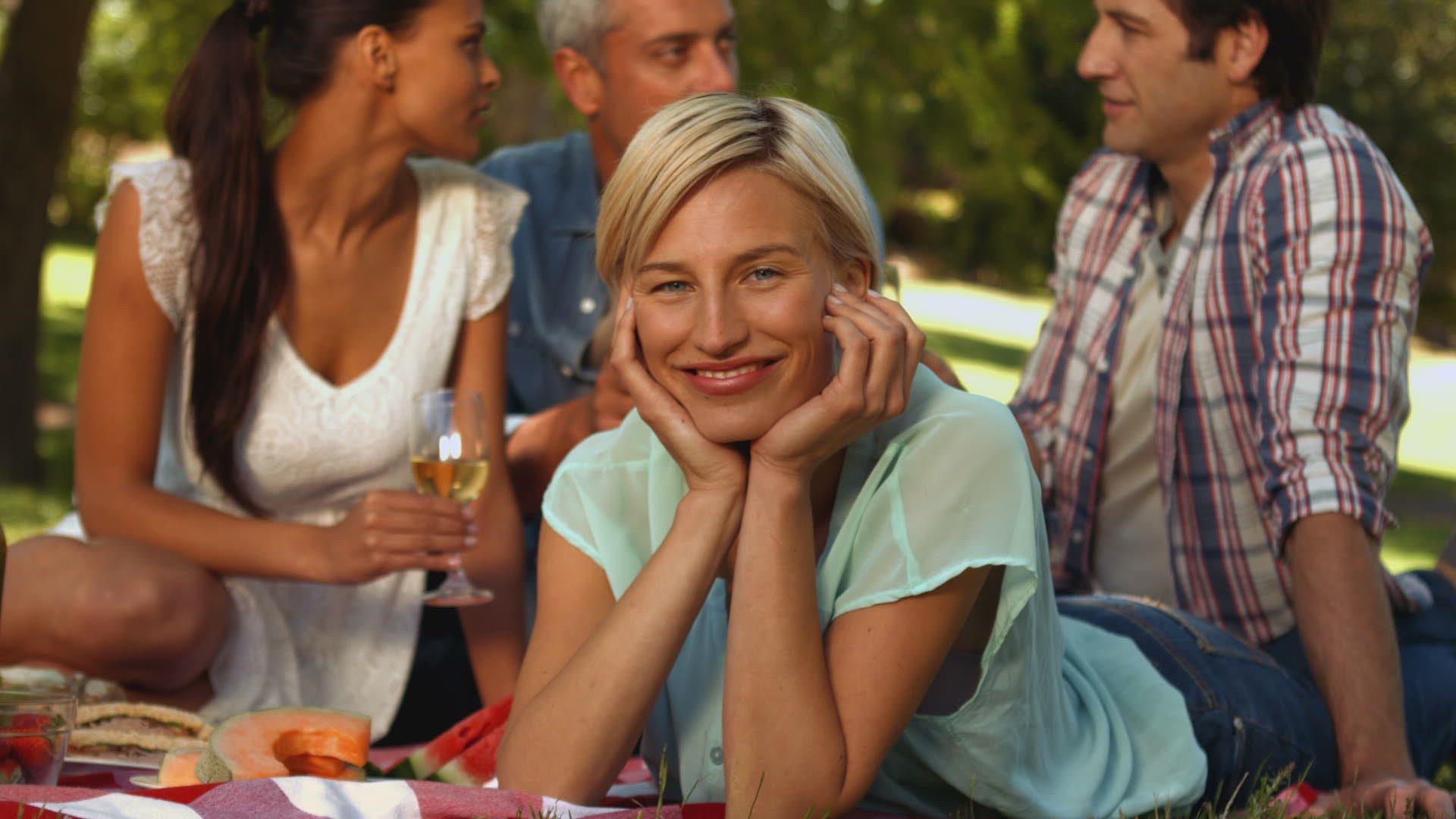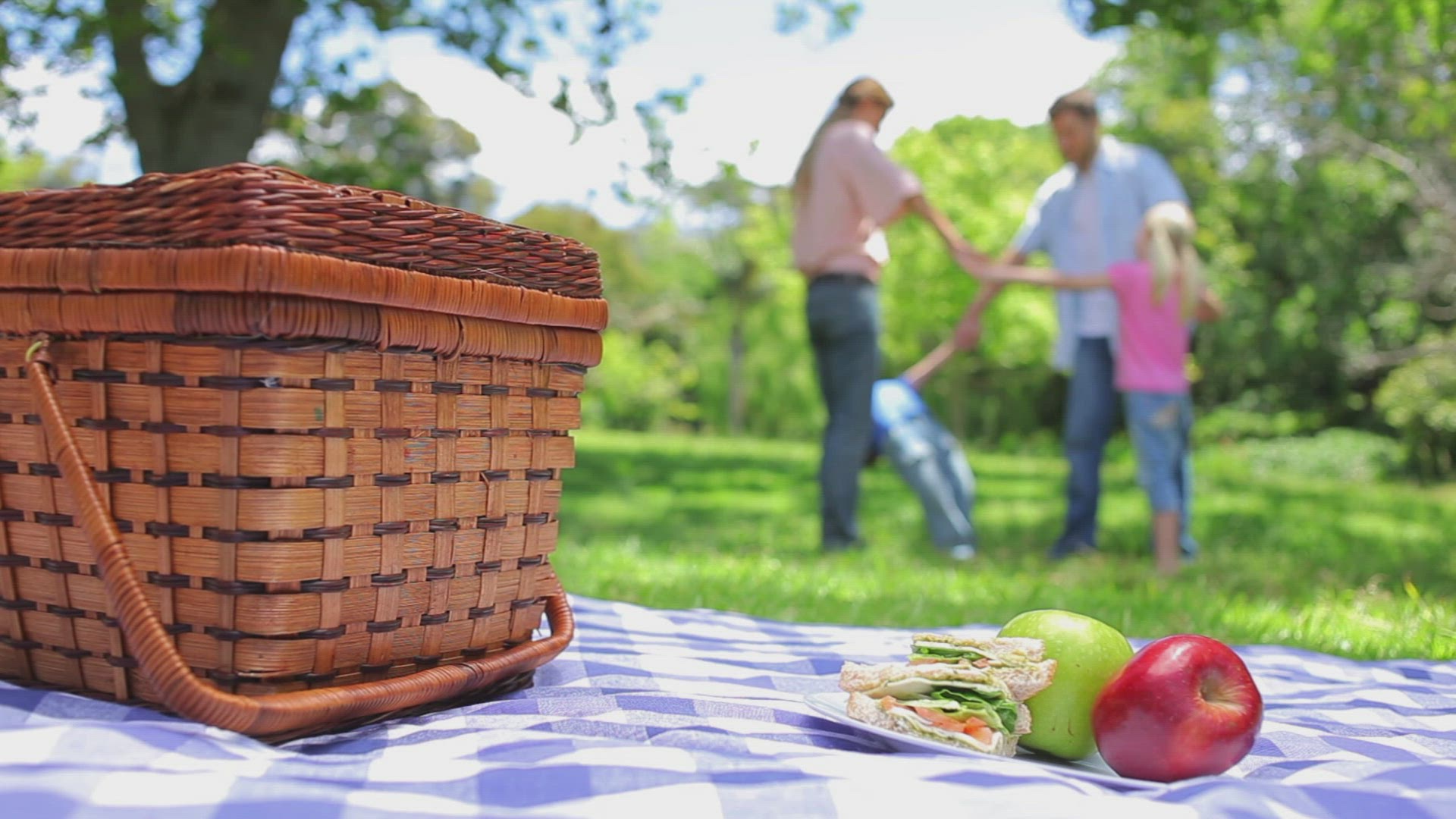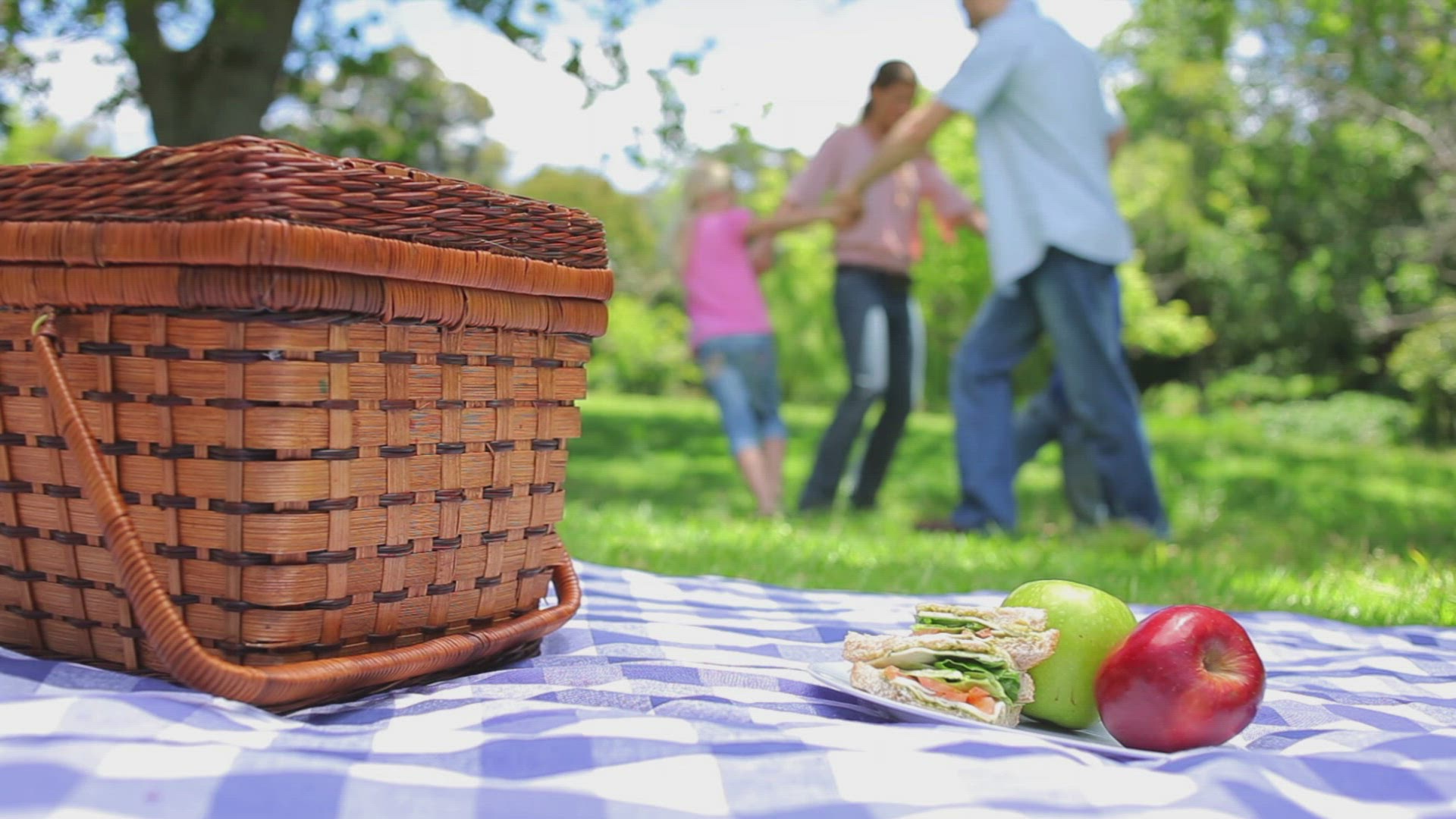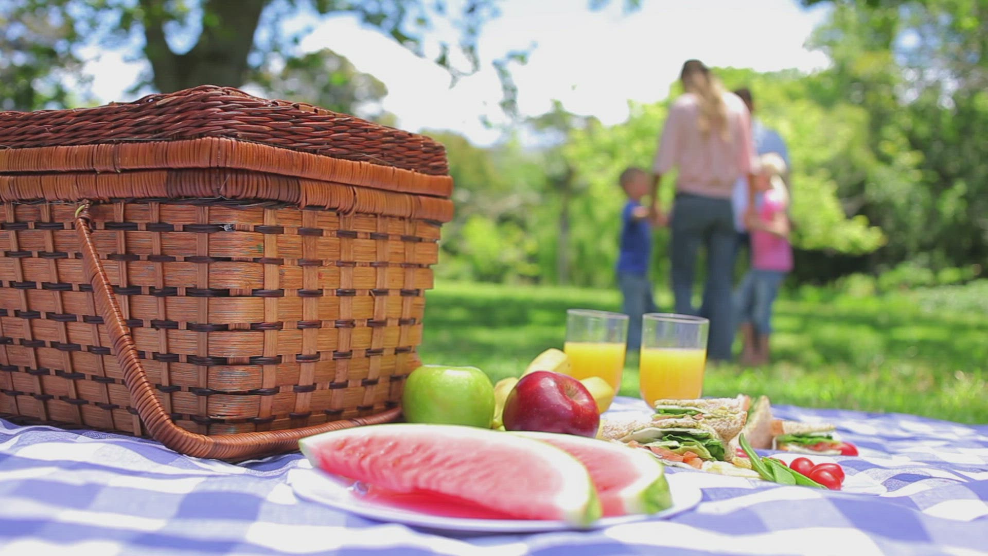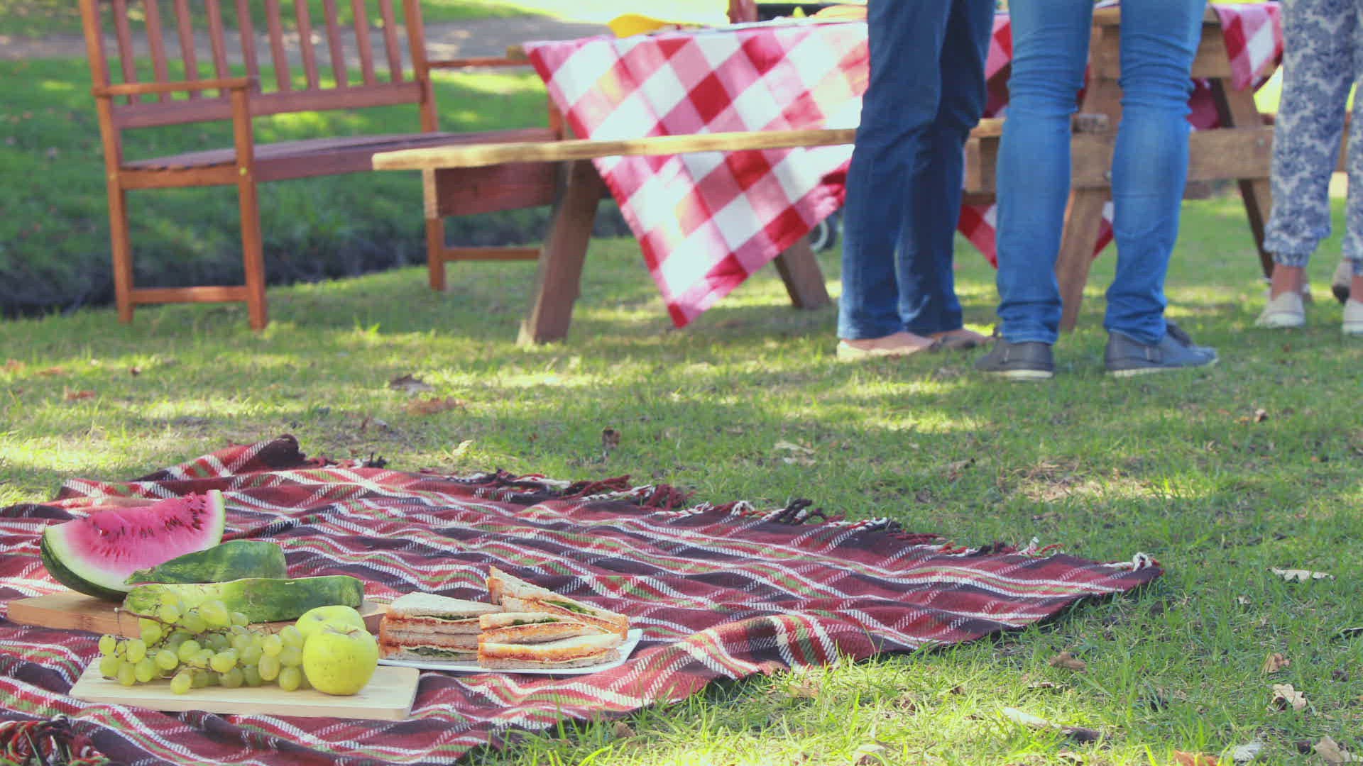 Happy children having picnic in park on a sunny day