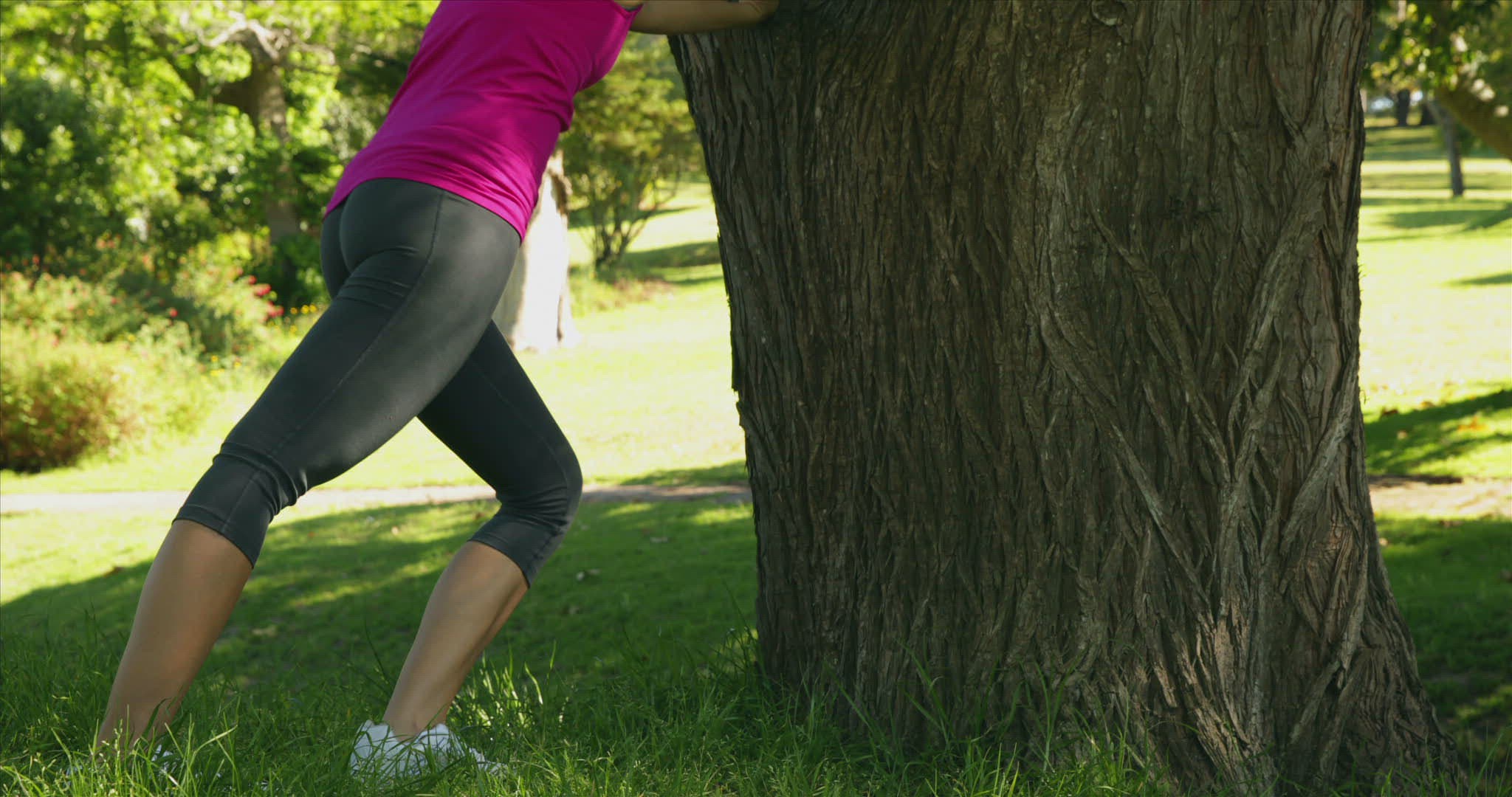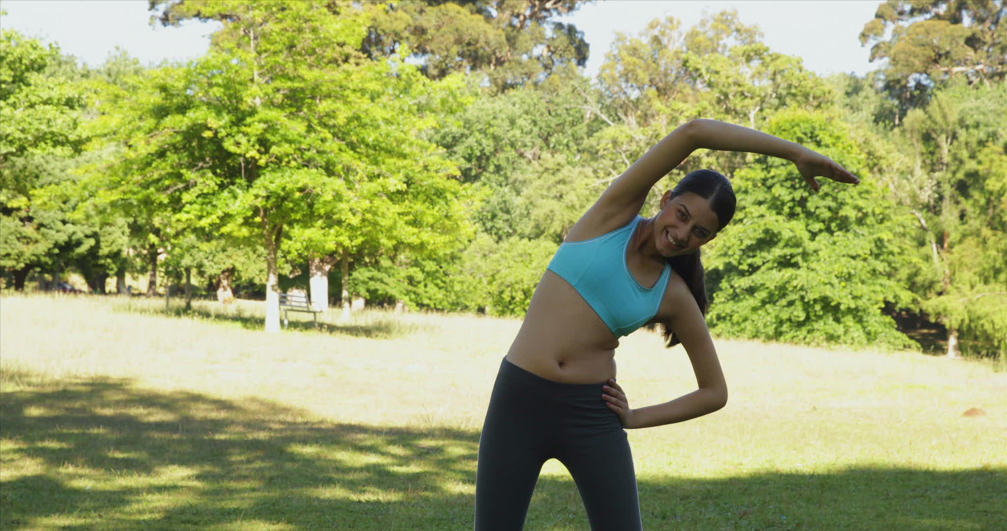 Children doing gymnastic together in park on a sunny day