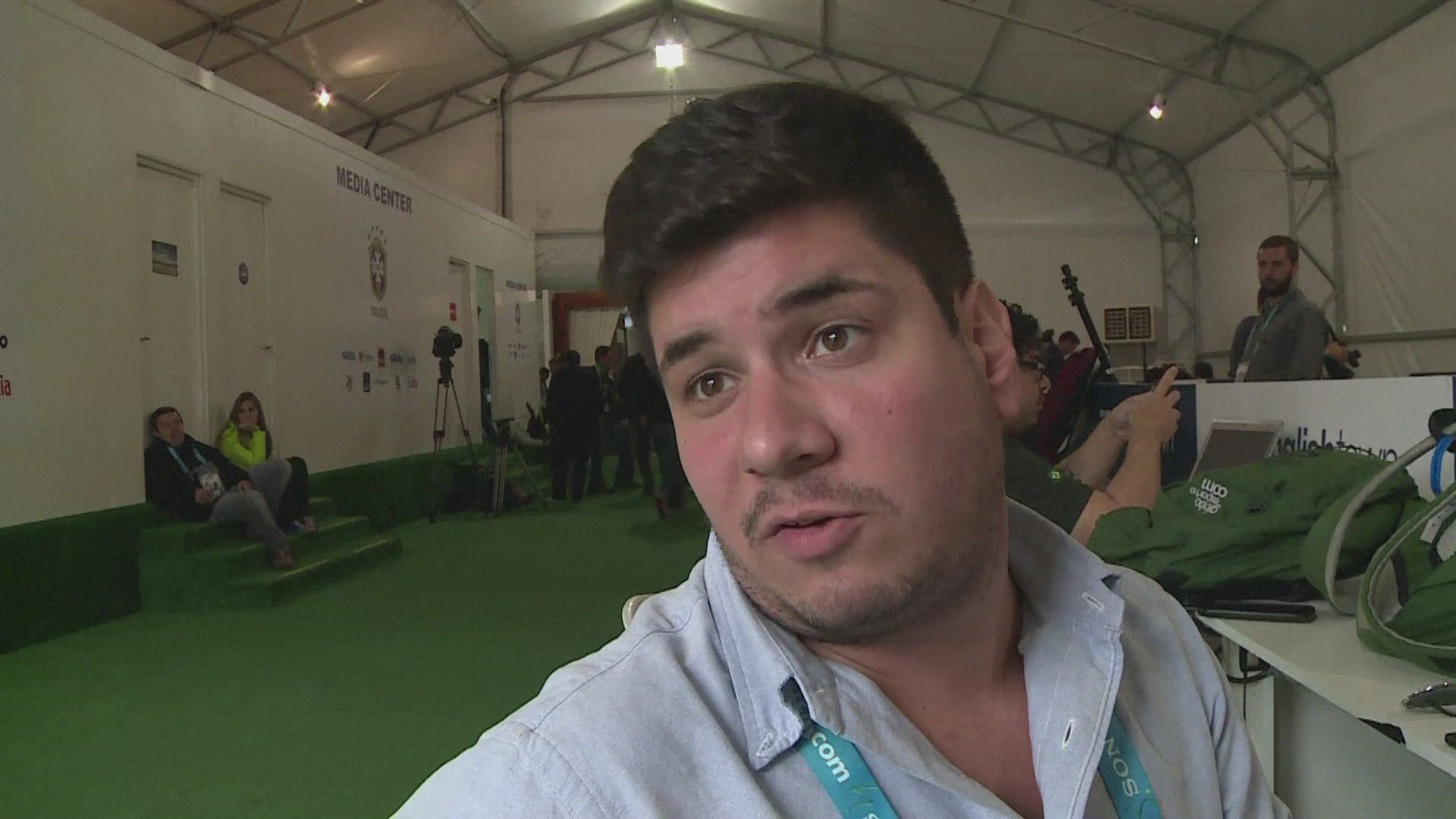Young woman touching a fish-tank behind the camera at the aquarium