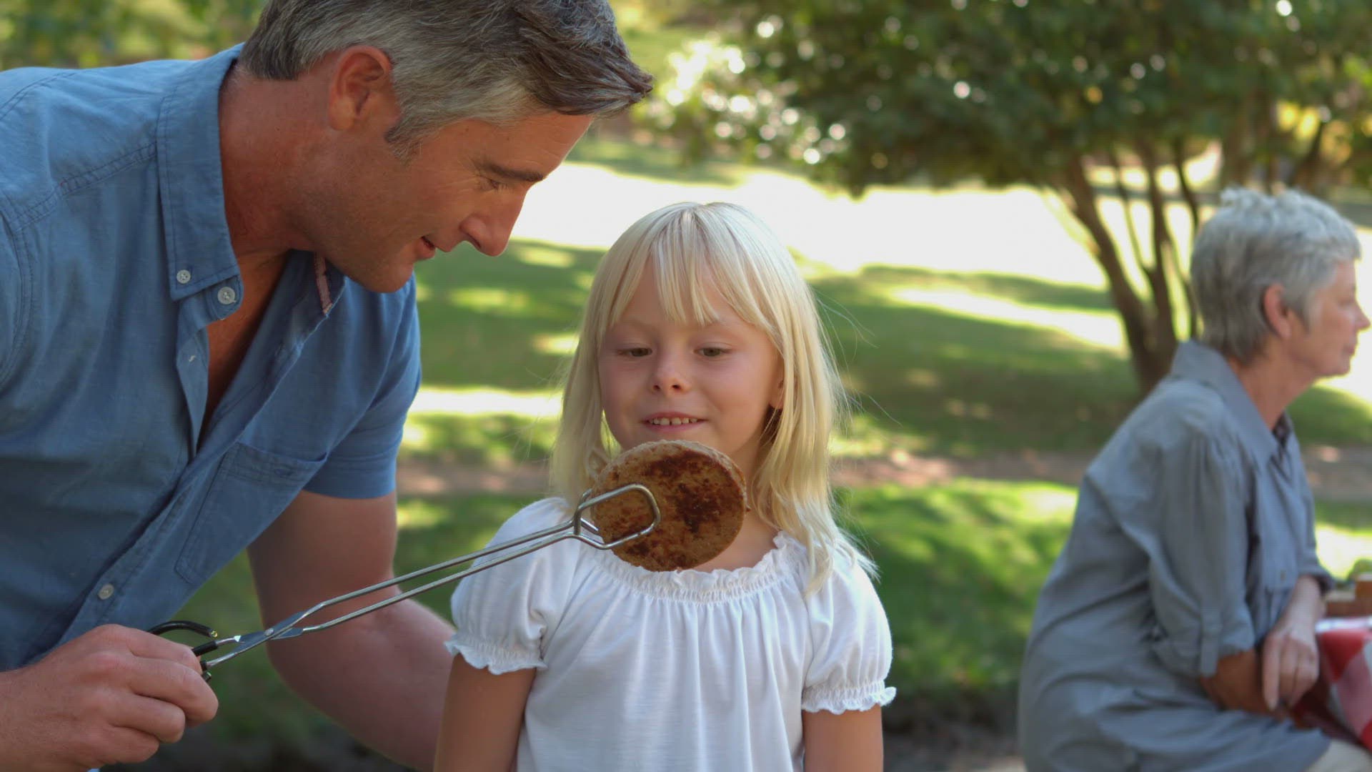 Happy father doing barbecue with her daughter on a sunny day