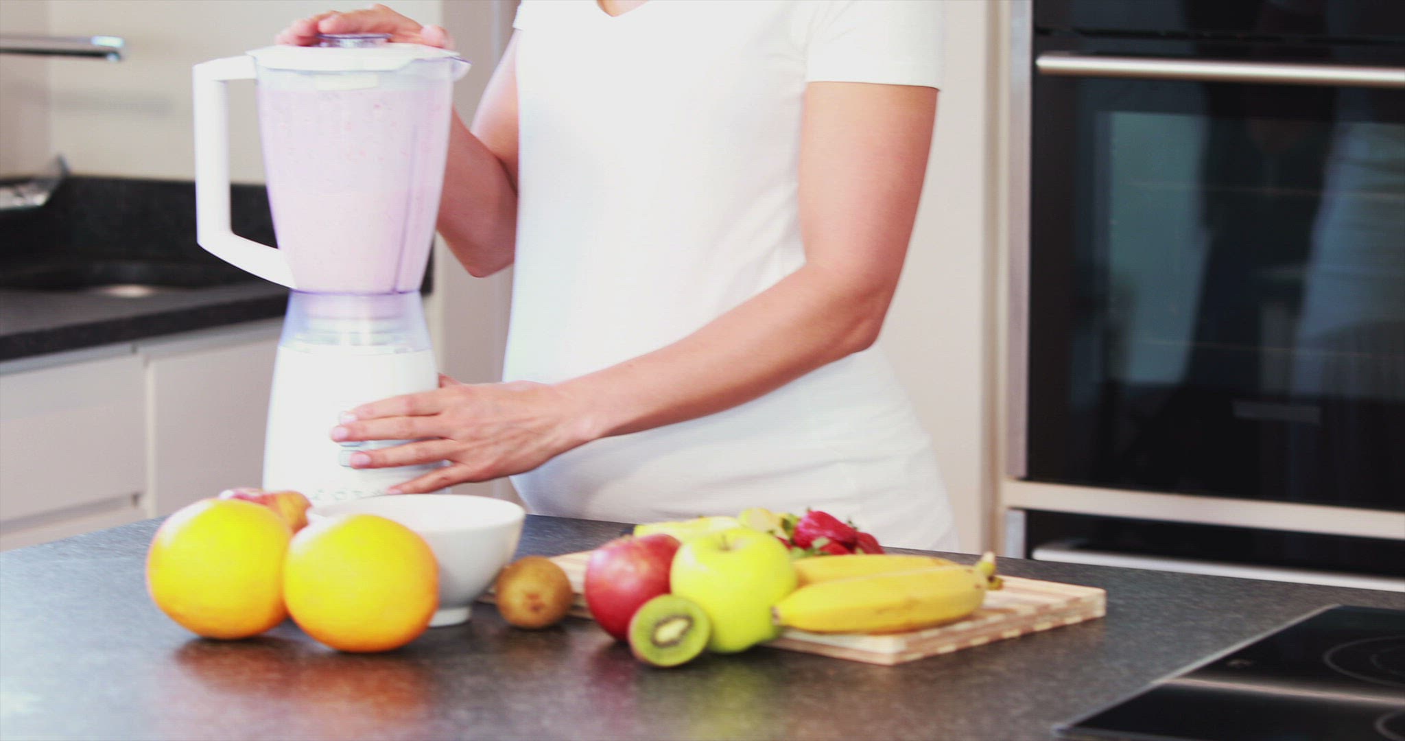 Mother and daughter making smoothie in the kitchen