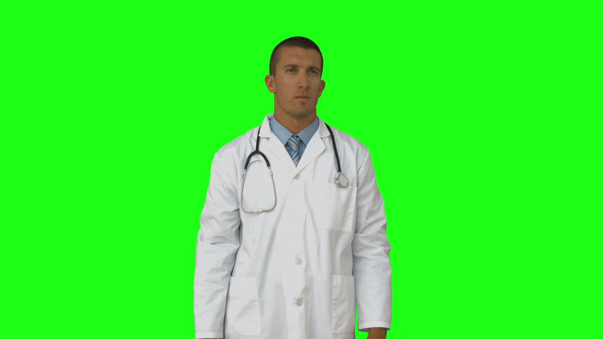 Doctor presenting with hands on green screen background