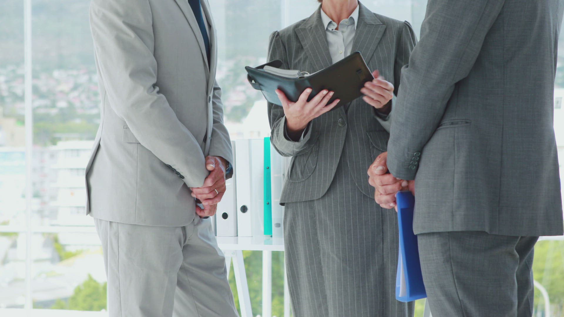Video of close up view of business people hands holding wheels