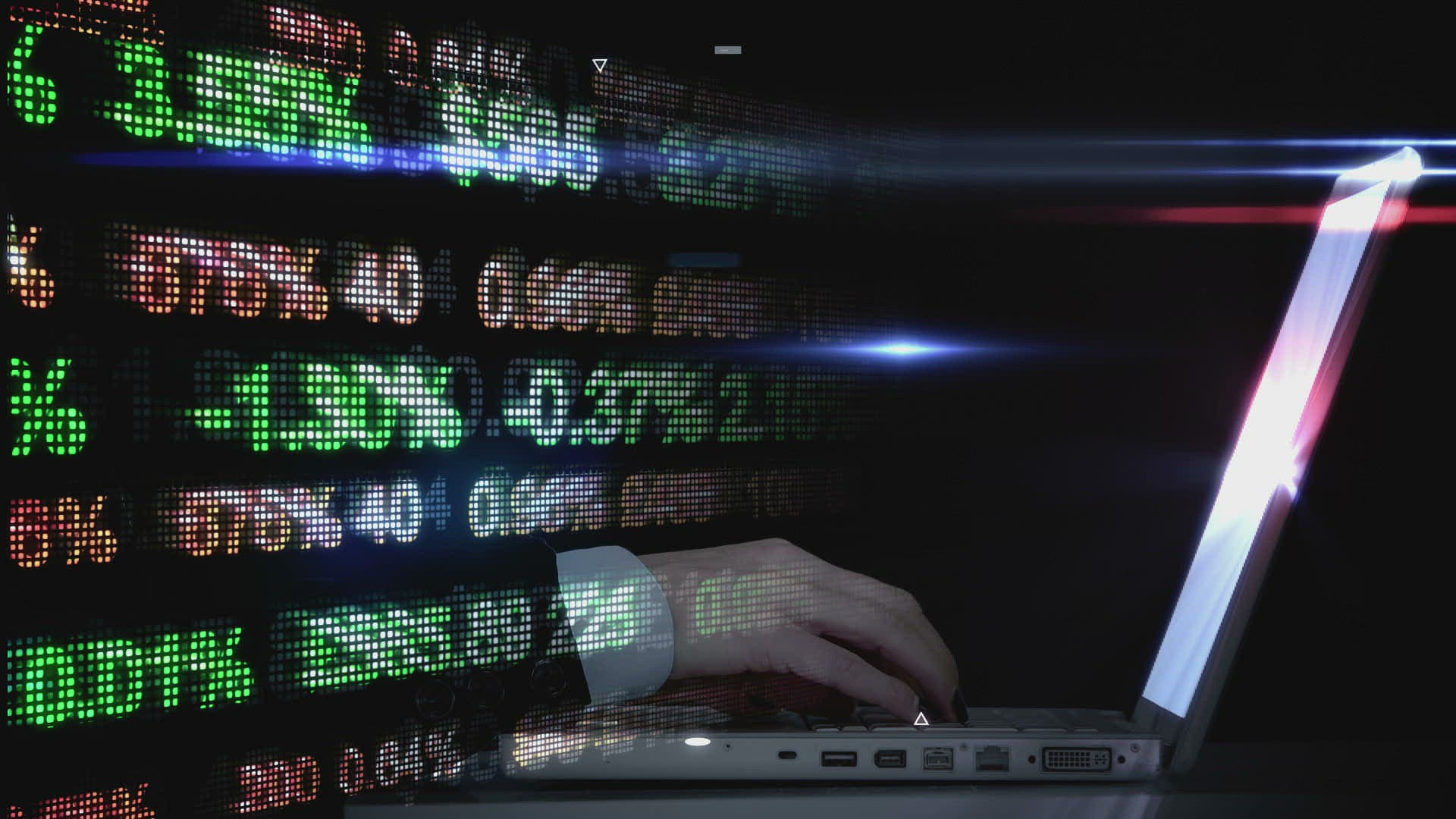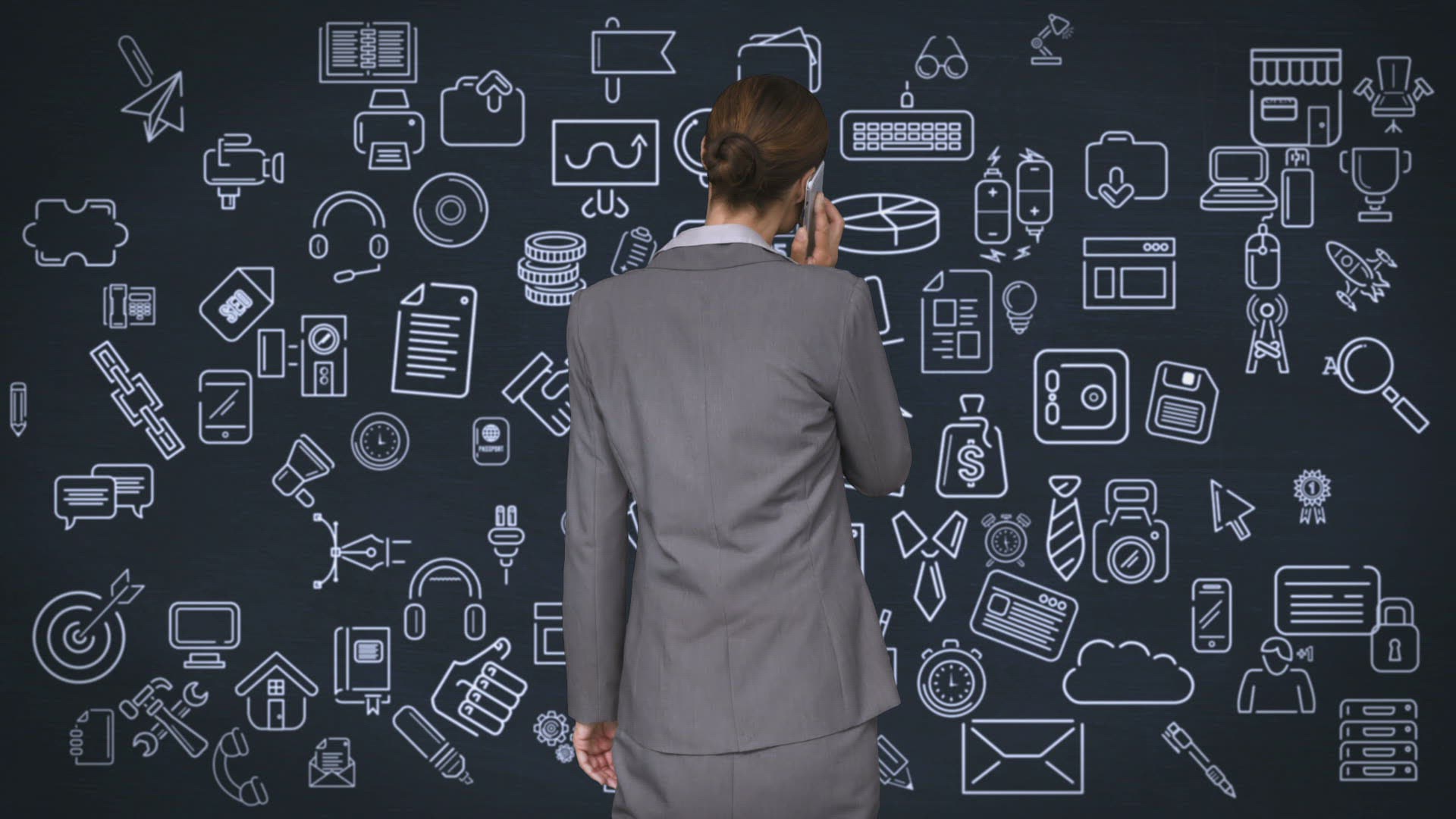 Rear view of businessman looking at tech interface