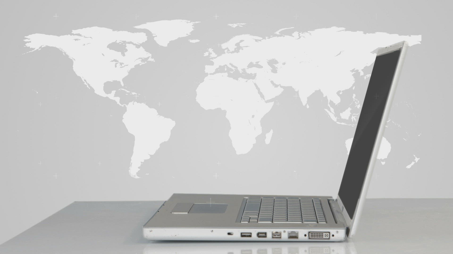 Men silhouettes popping up from laptop against blue planetary