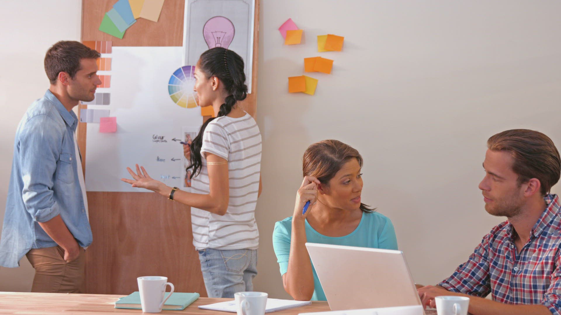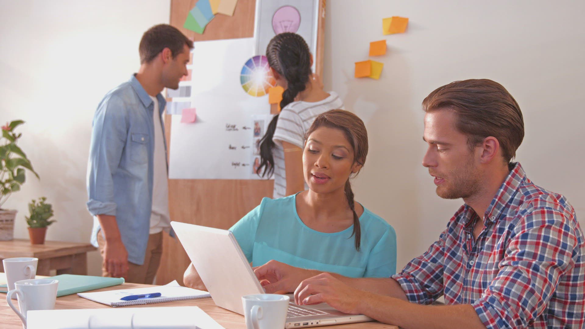 Creative team looking at computer and laptop in office