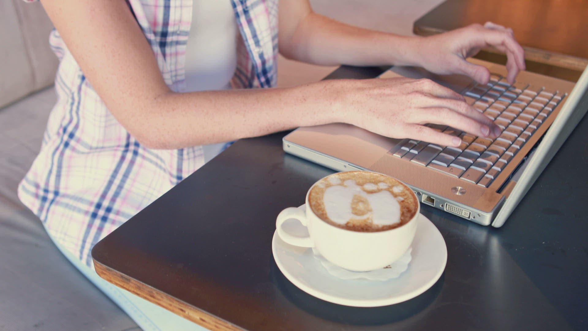 Pretty woman drinking cappuccino in restaurant in high quality 4k format