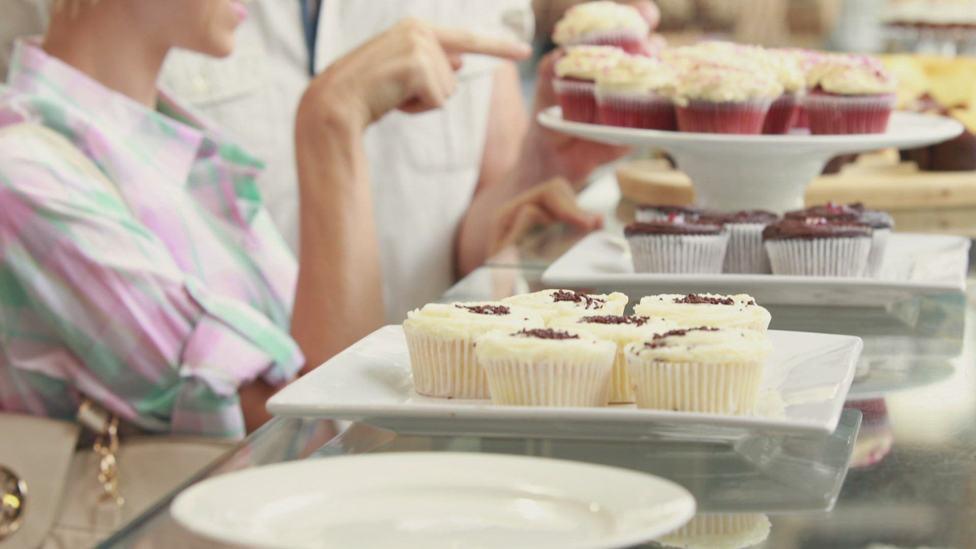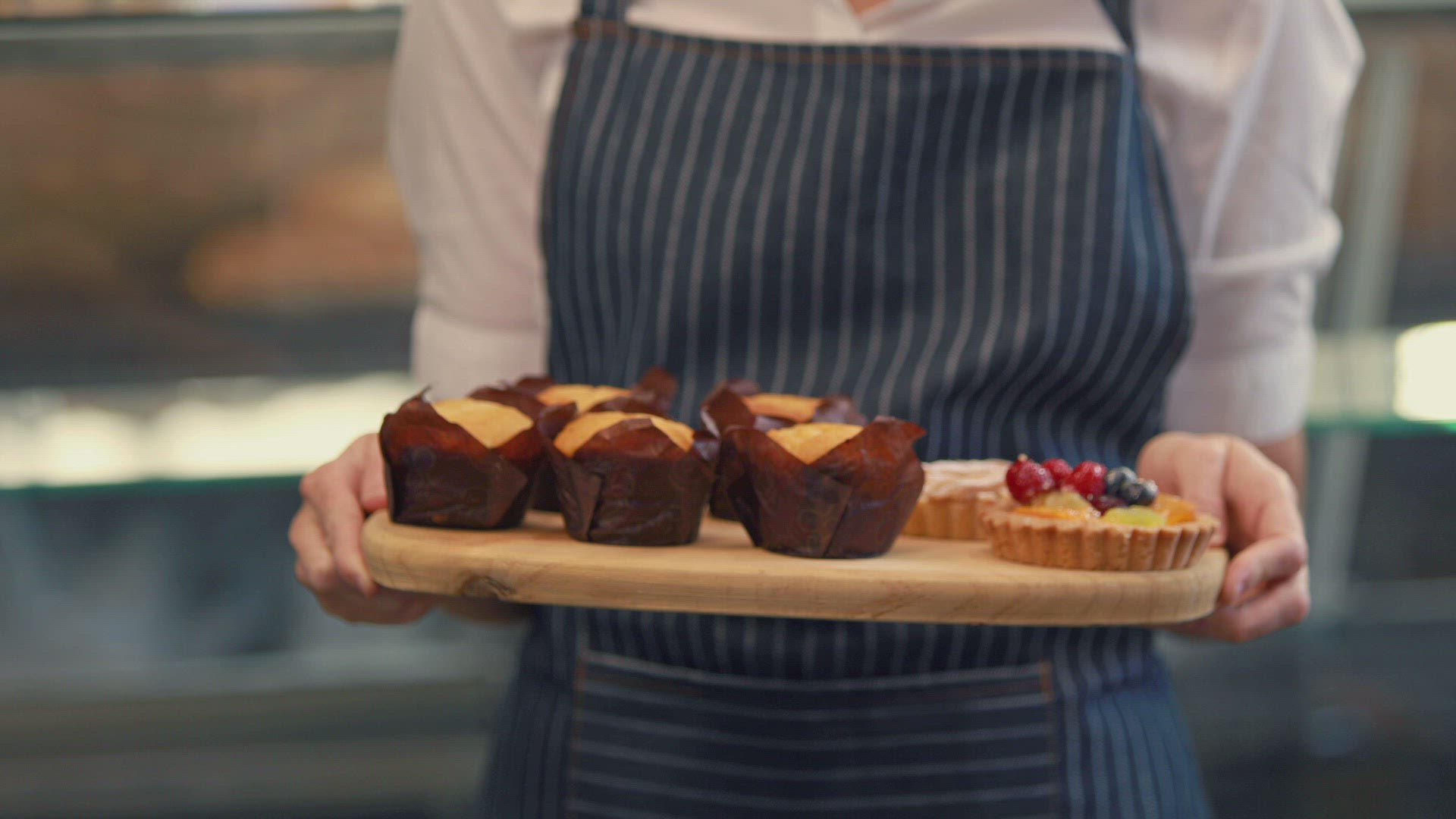Happy pretty woman preparing plate of cake in high quality 4k format