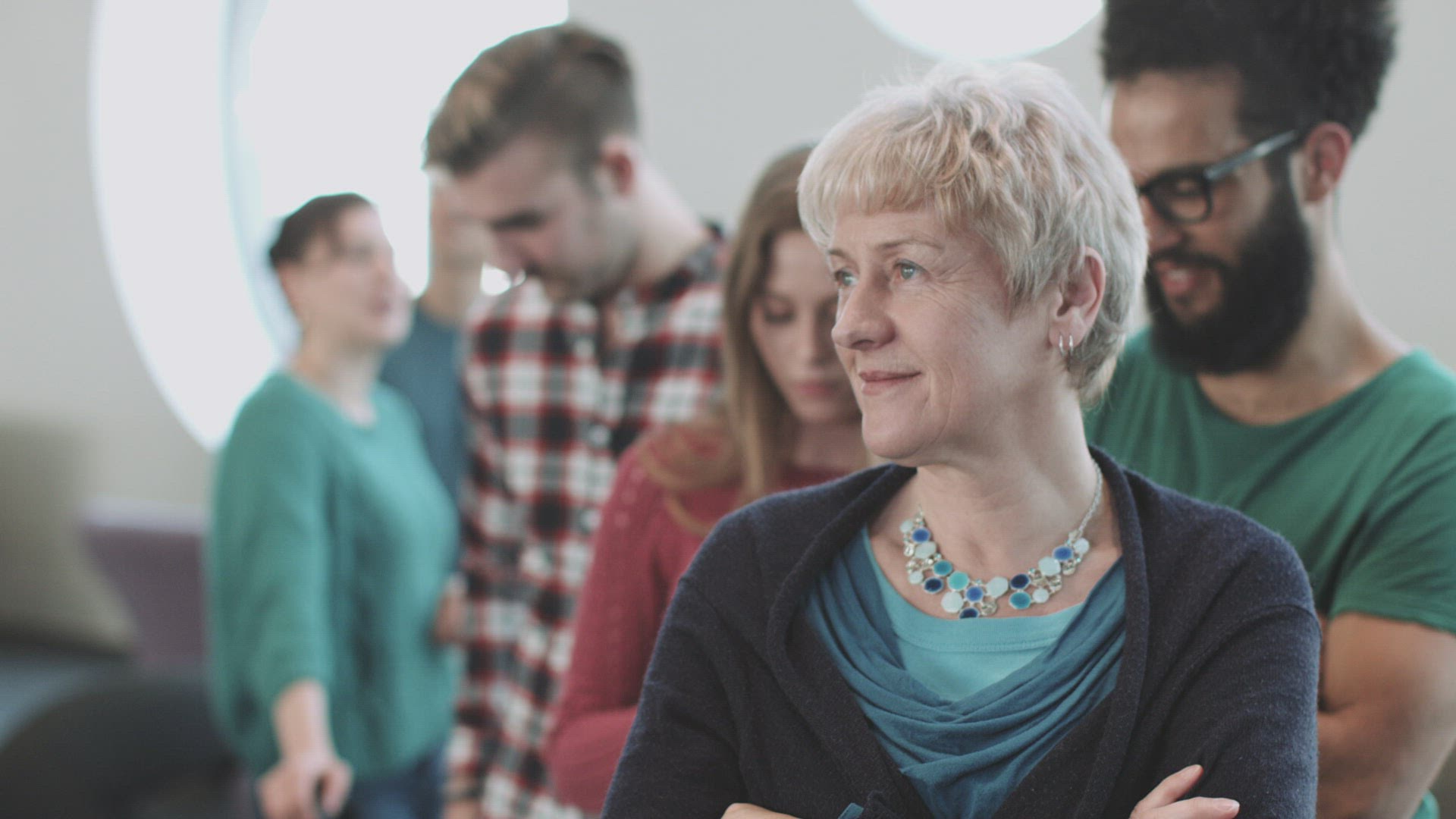Multi generation family jumping on the beach in slow motion