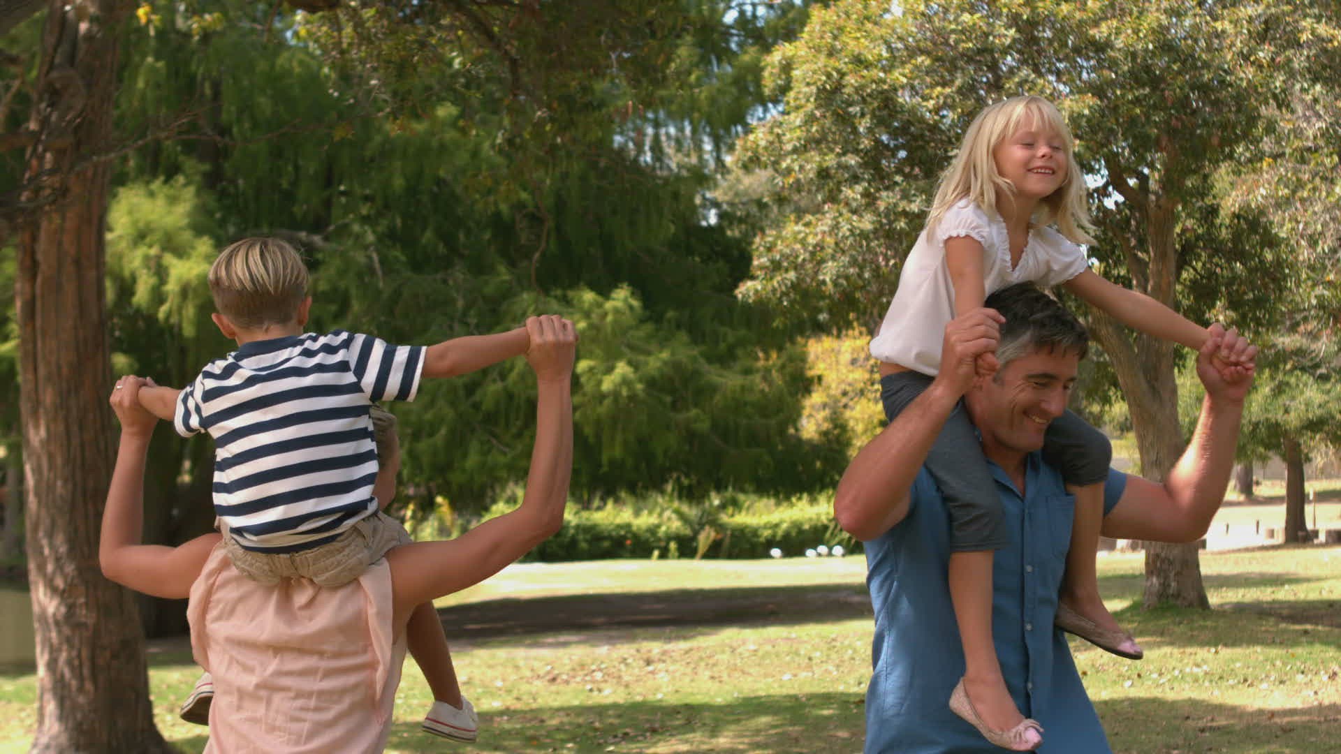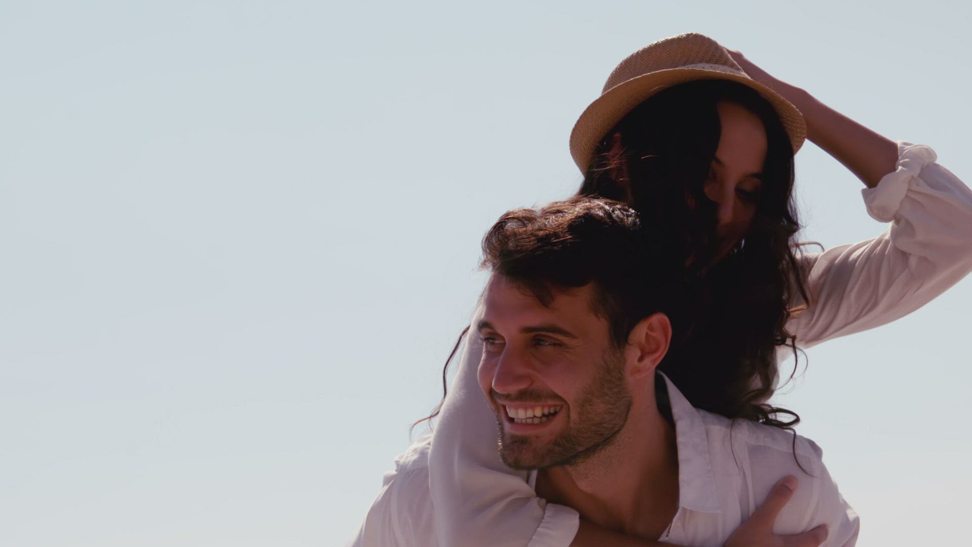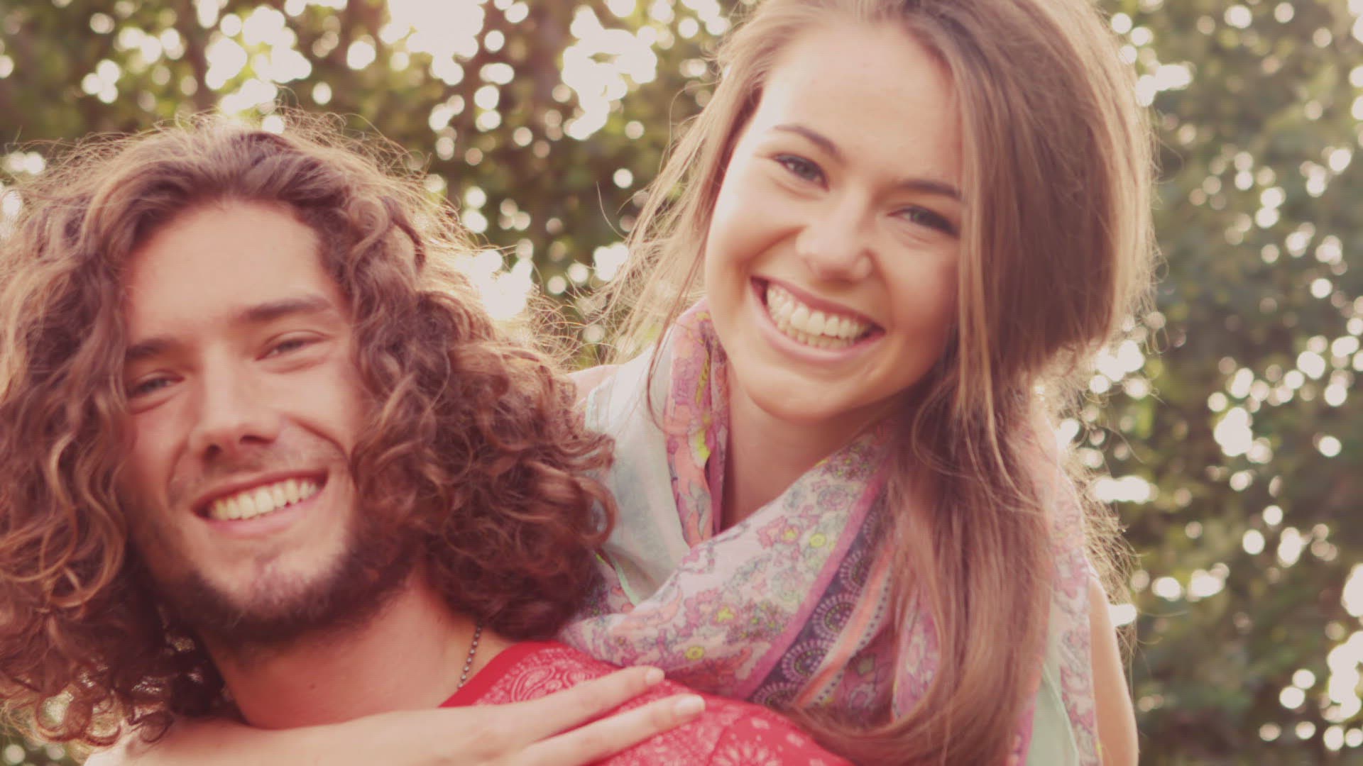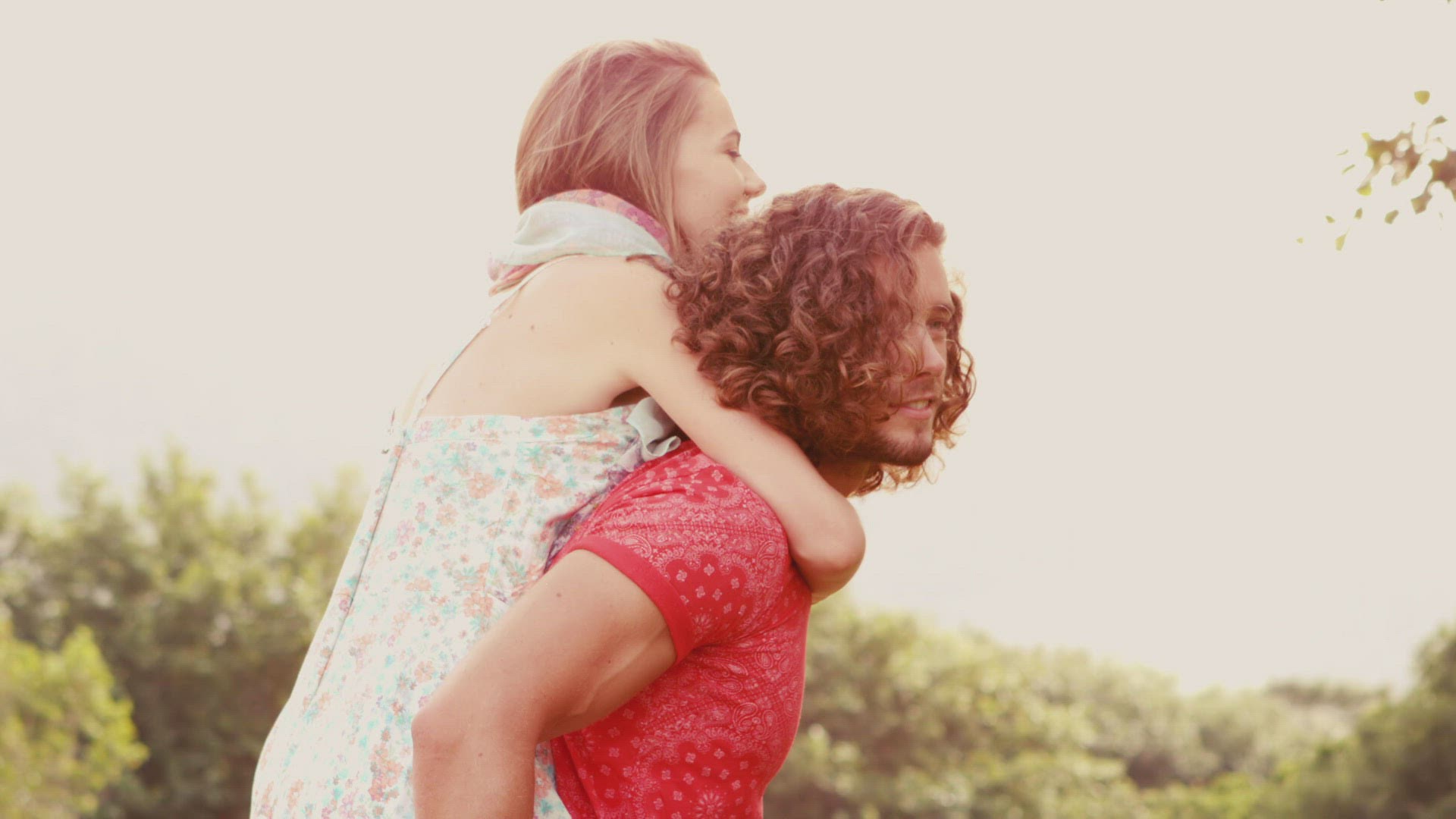 Handsome man carrying his girlfriend on a sunny day