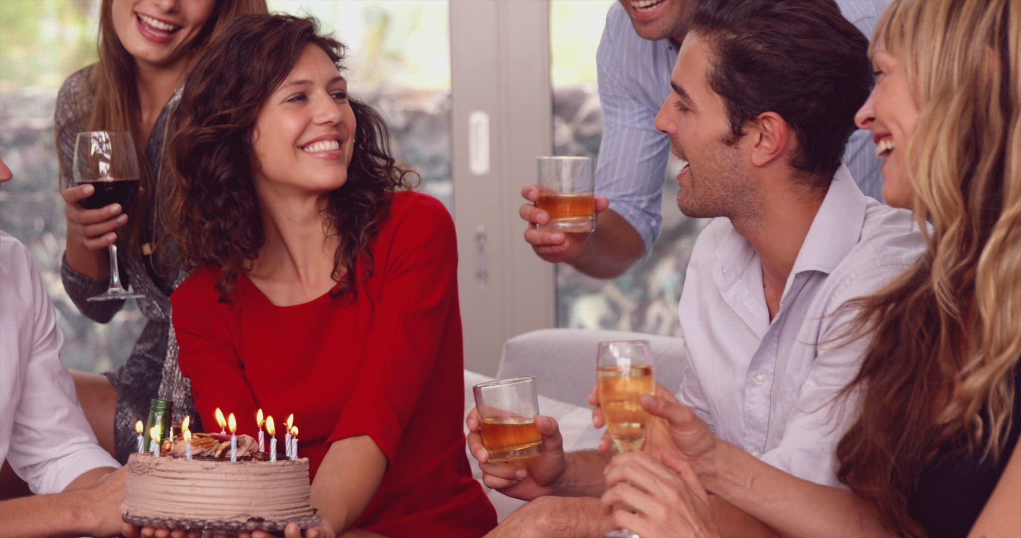 Woman blowing out candle on her birthday cake in slow motion