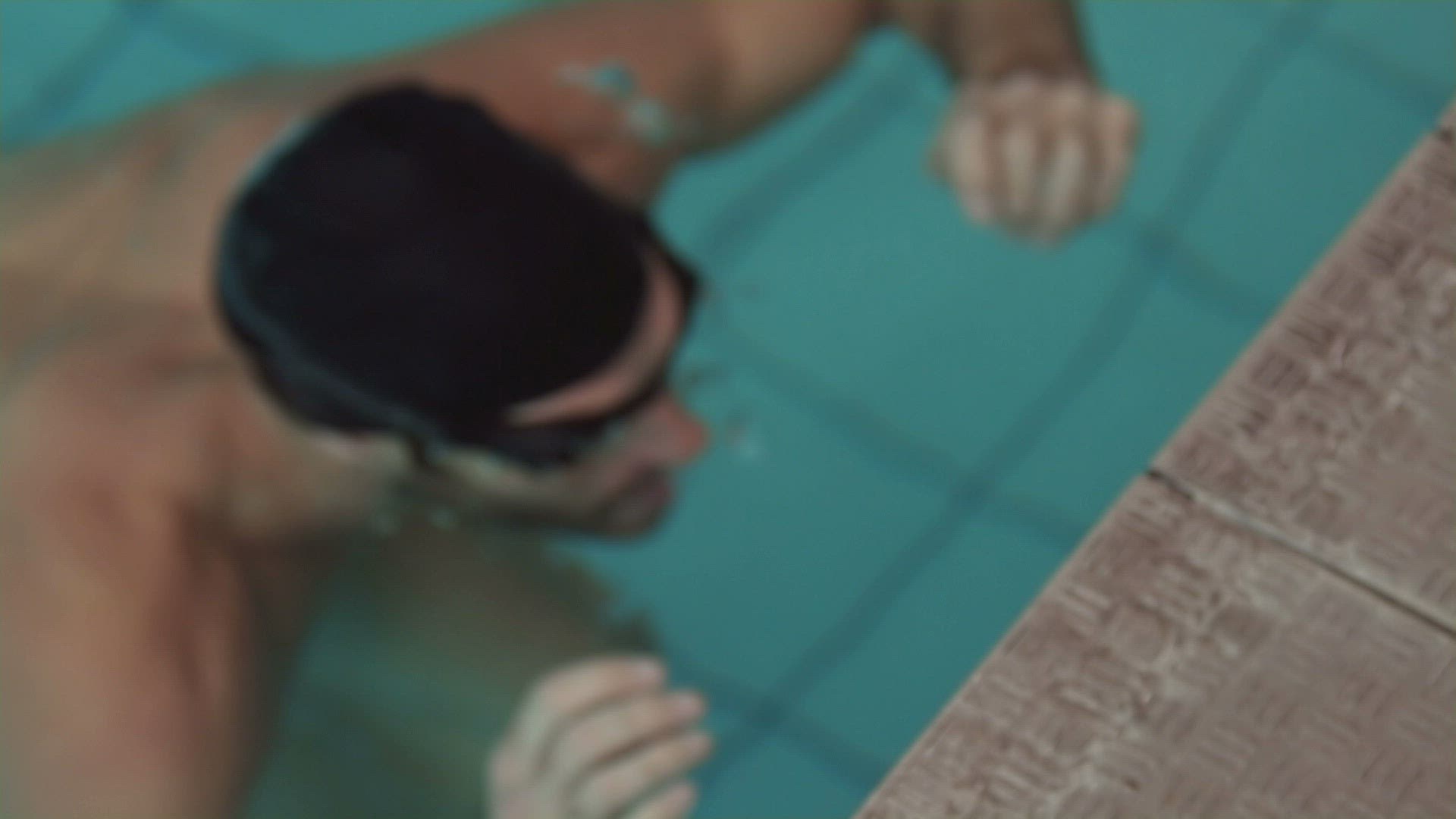 Thoughtful man in the swimming pool at the leisure centre