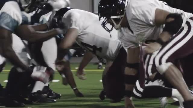 > Slow tilt up of the football getting snapped