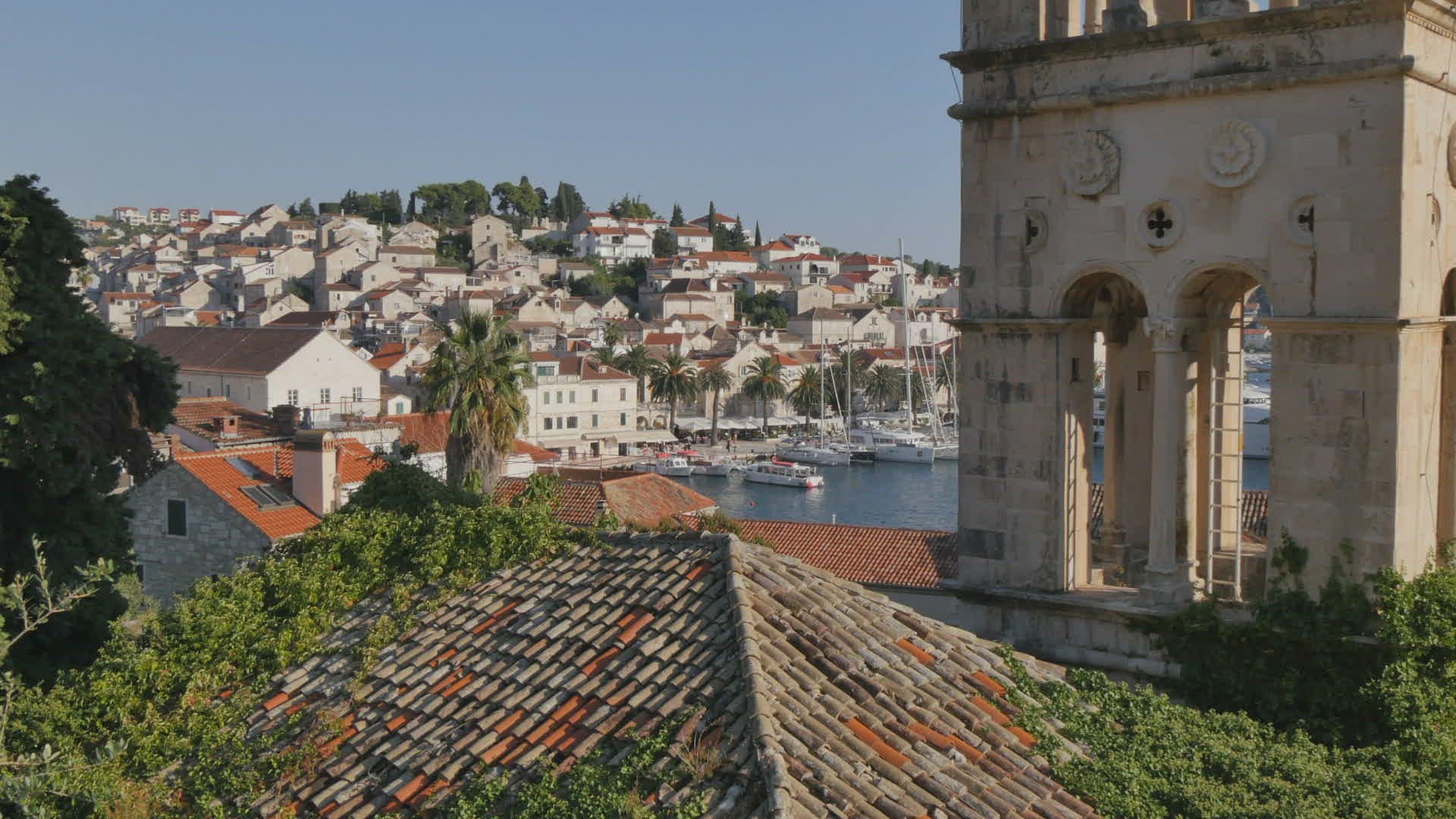 936230 - View of town and Church Bell Tower, Hvar, Hvar Island, Dalmatia, Croatia, Europe