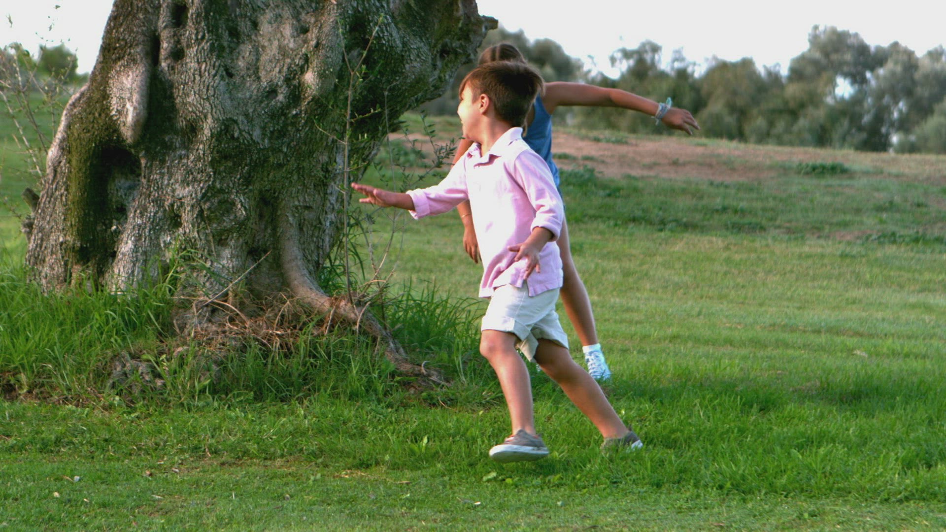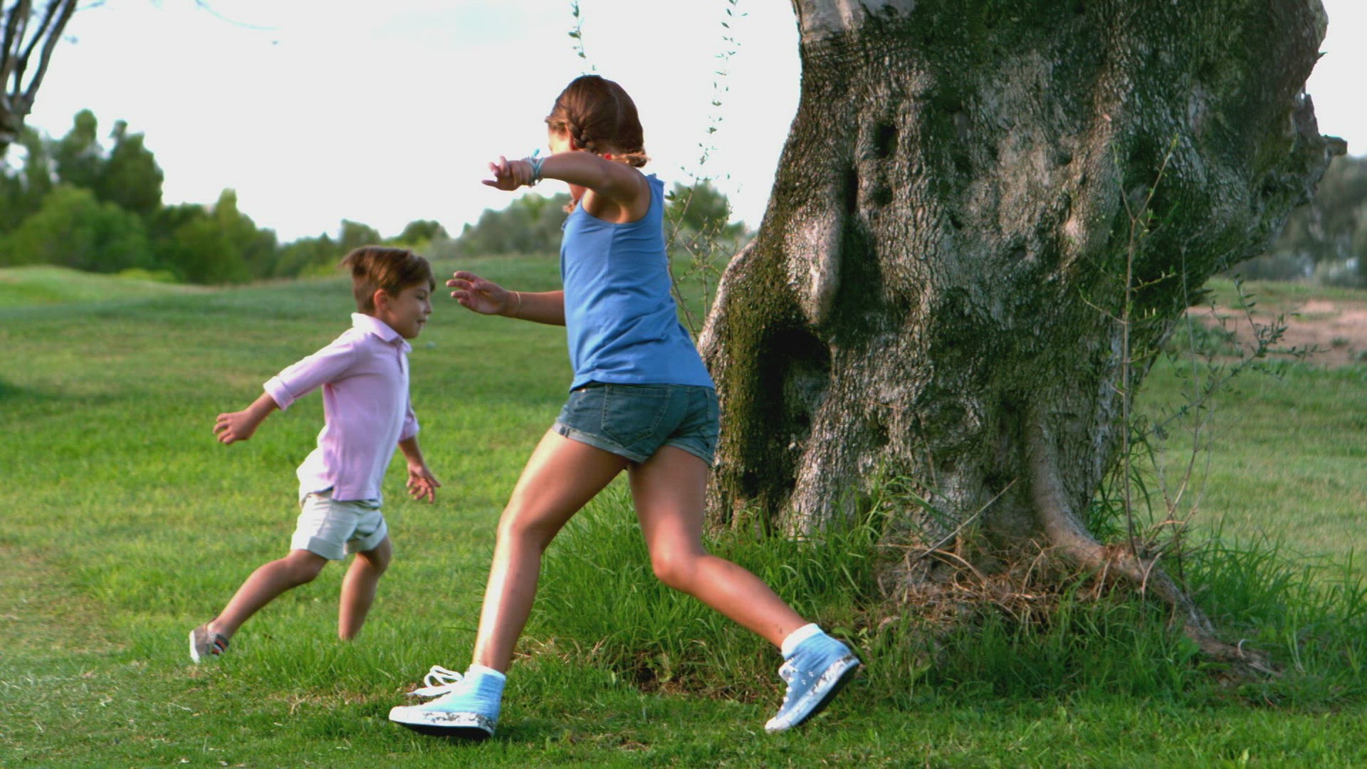 Group of teenagers run at speed through surf along beach.Shot on Canon 5D Mk2 at at a frame rate of 30 fps