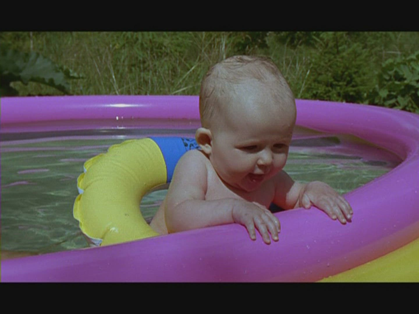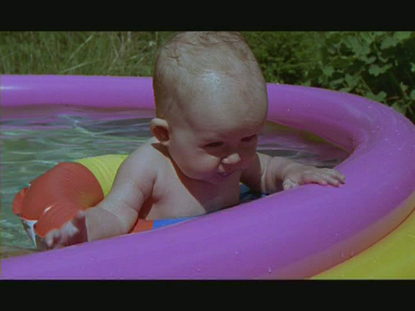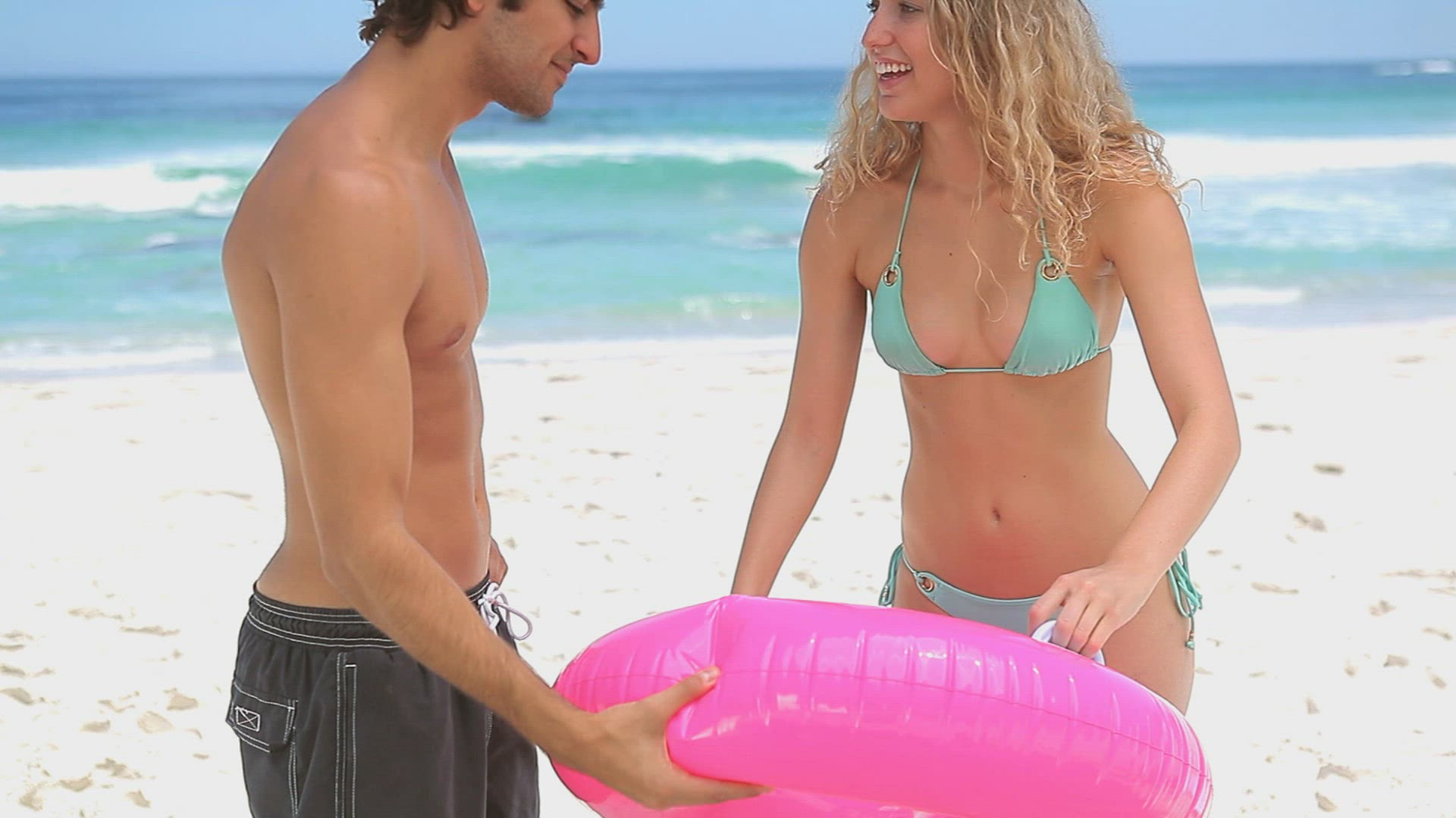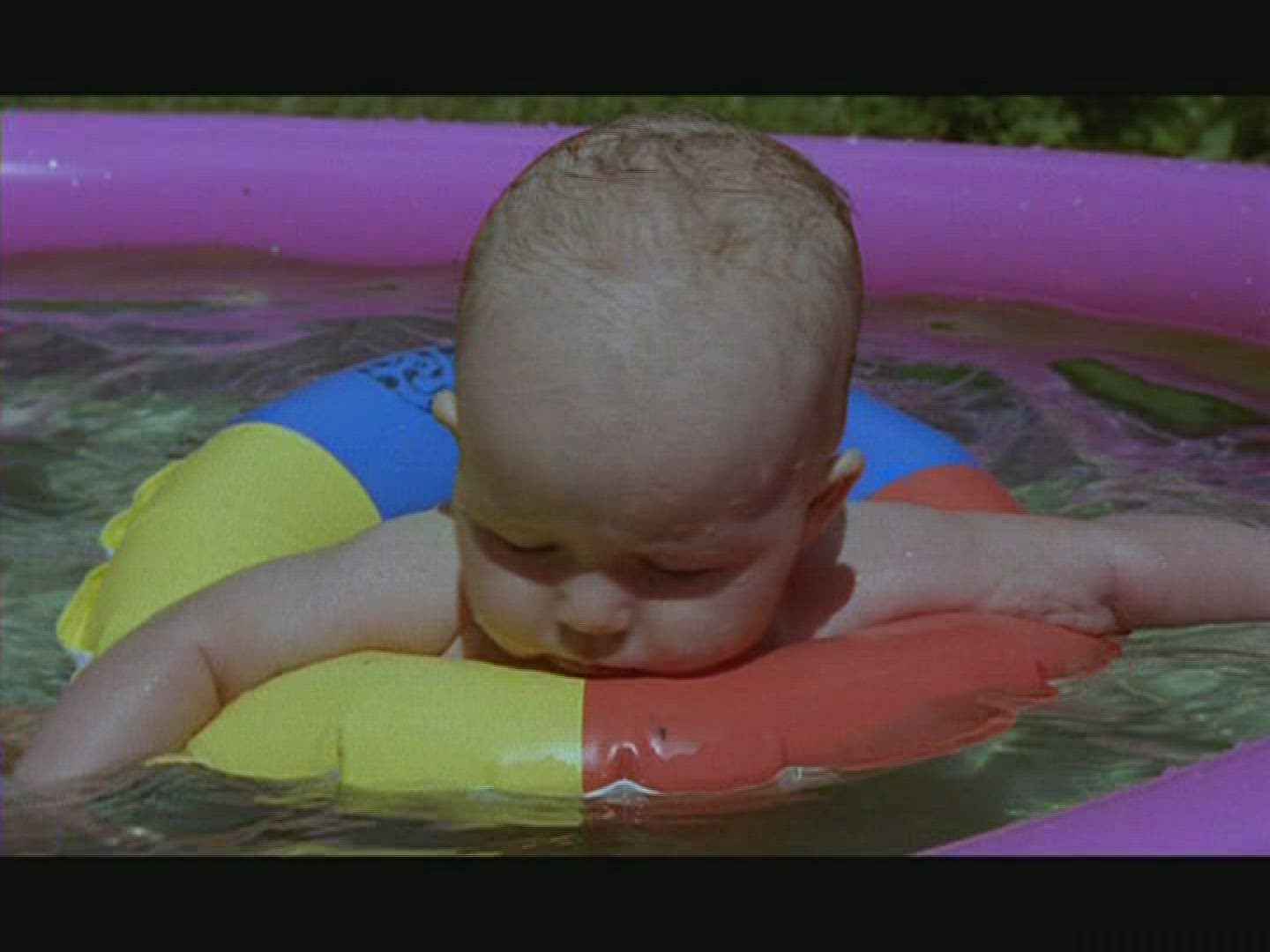 Girl lying on inflatable rubber ring floating in swimming pool and revolving.Shot on Canon 5D Mk2 at at a frame rate of 30 fps