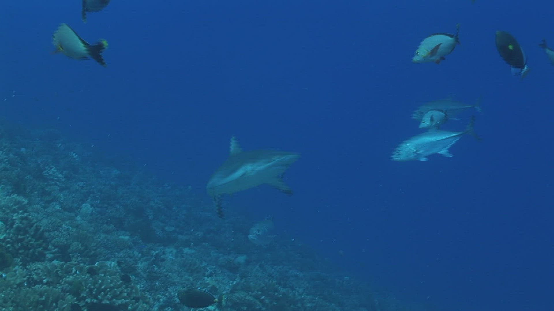 1942717 - 989007453 / School of Fish / Reef Shark / South Pacific