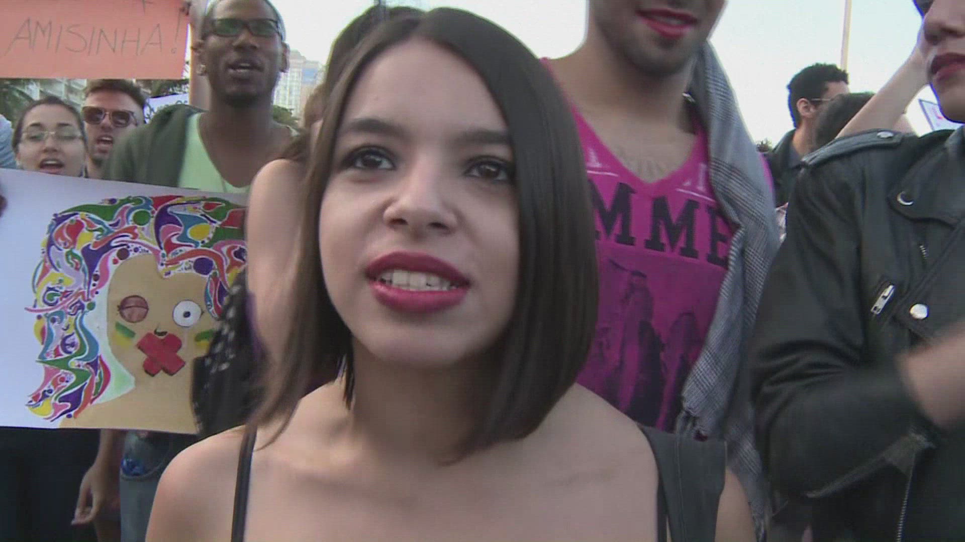 Young business couple walk through park together holding takeaway coffee cups.Shot on Canon 5D MkII at a frame rate of 25fps
