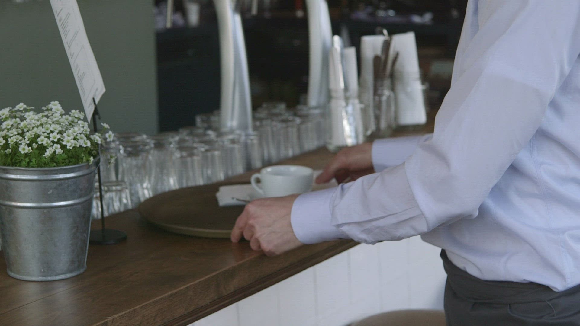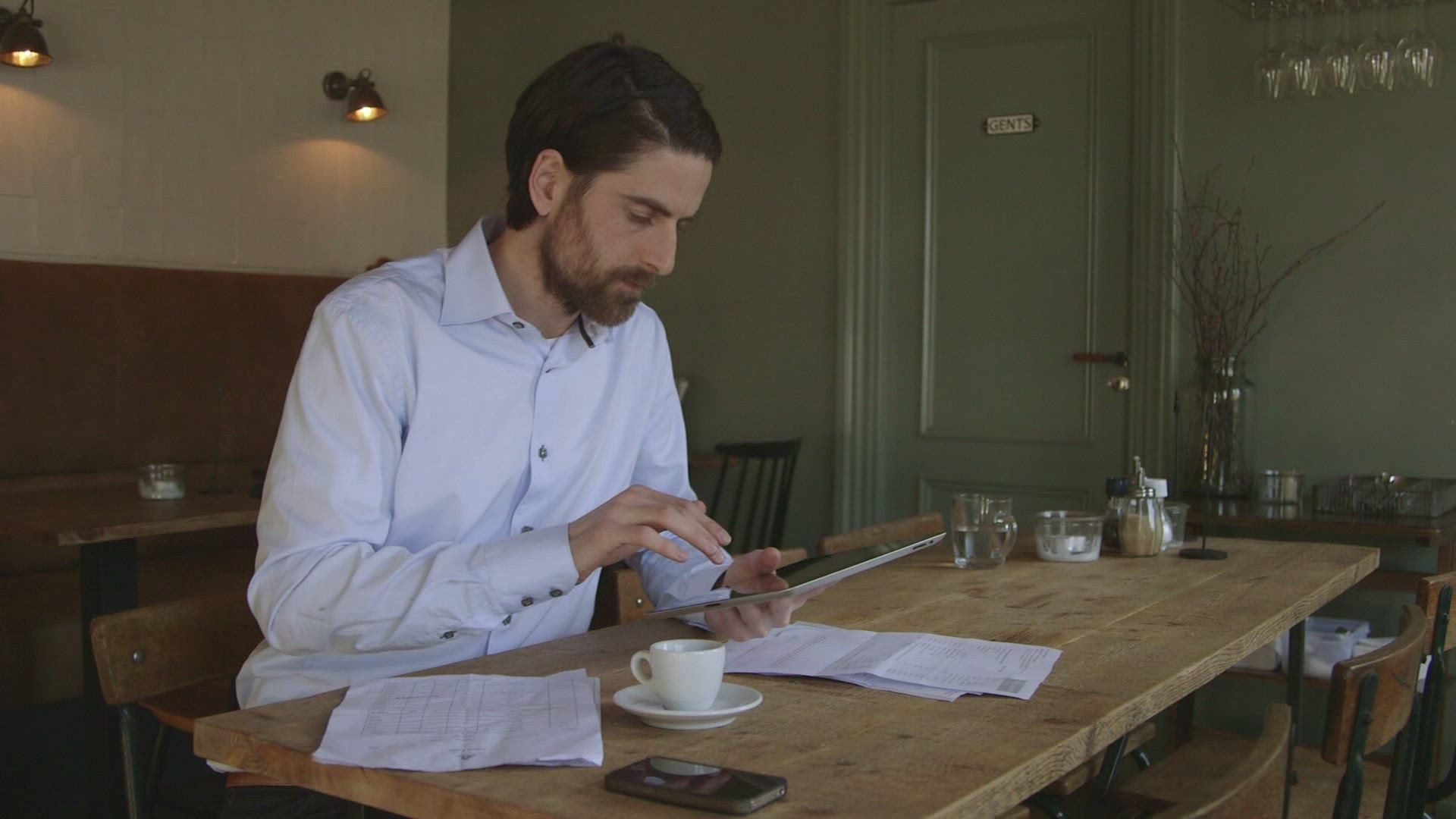 Couple sitting at table in café talking together.Shot on Sony FS700 in PAL format at a frame rate of 25fps