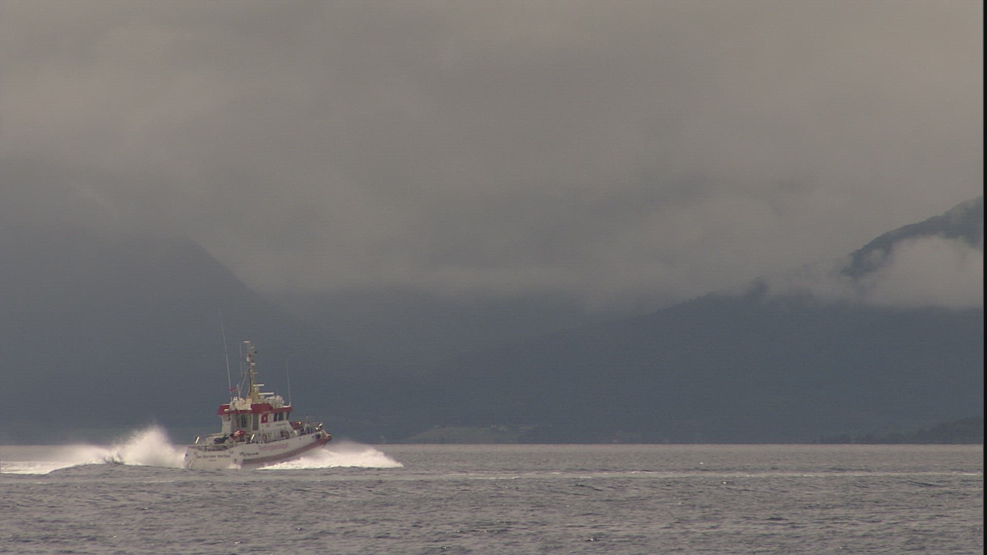 flight out on the water, following a ship that is going out to the sea, keeping town in sight