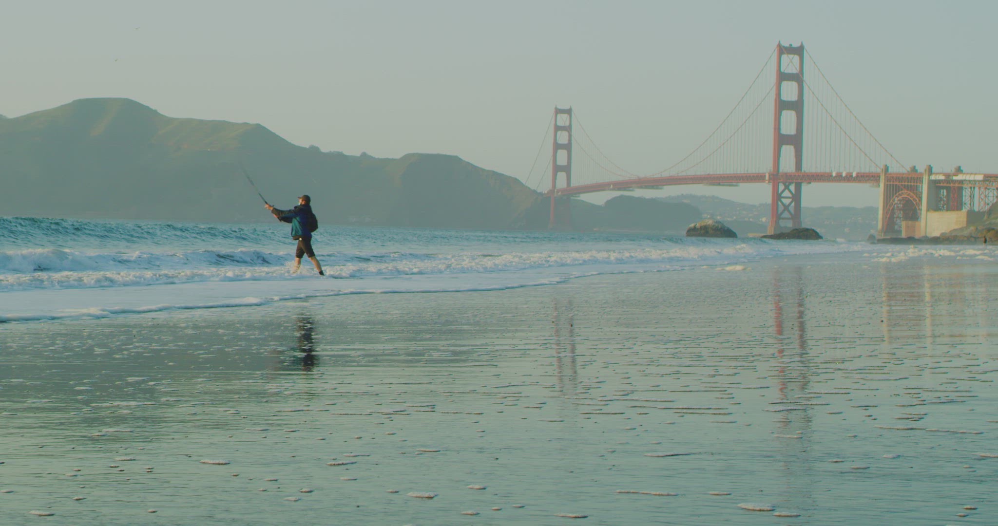 2117661 - Man fishing in ocean with Golden Gate Bridge