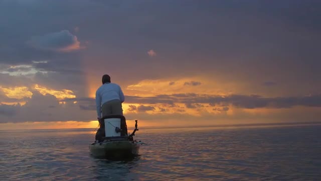 714610 - A man kayak fishing in the ocean