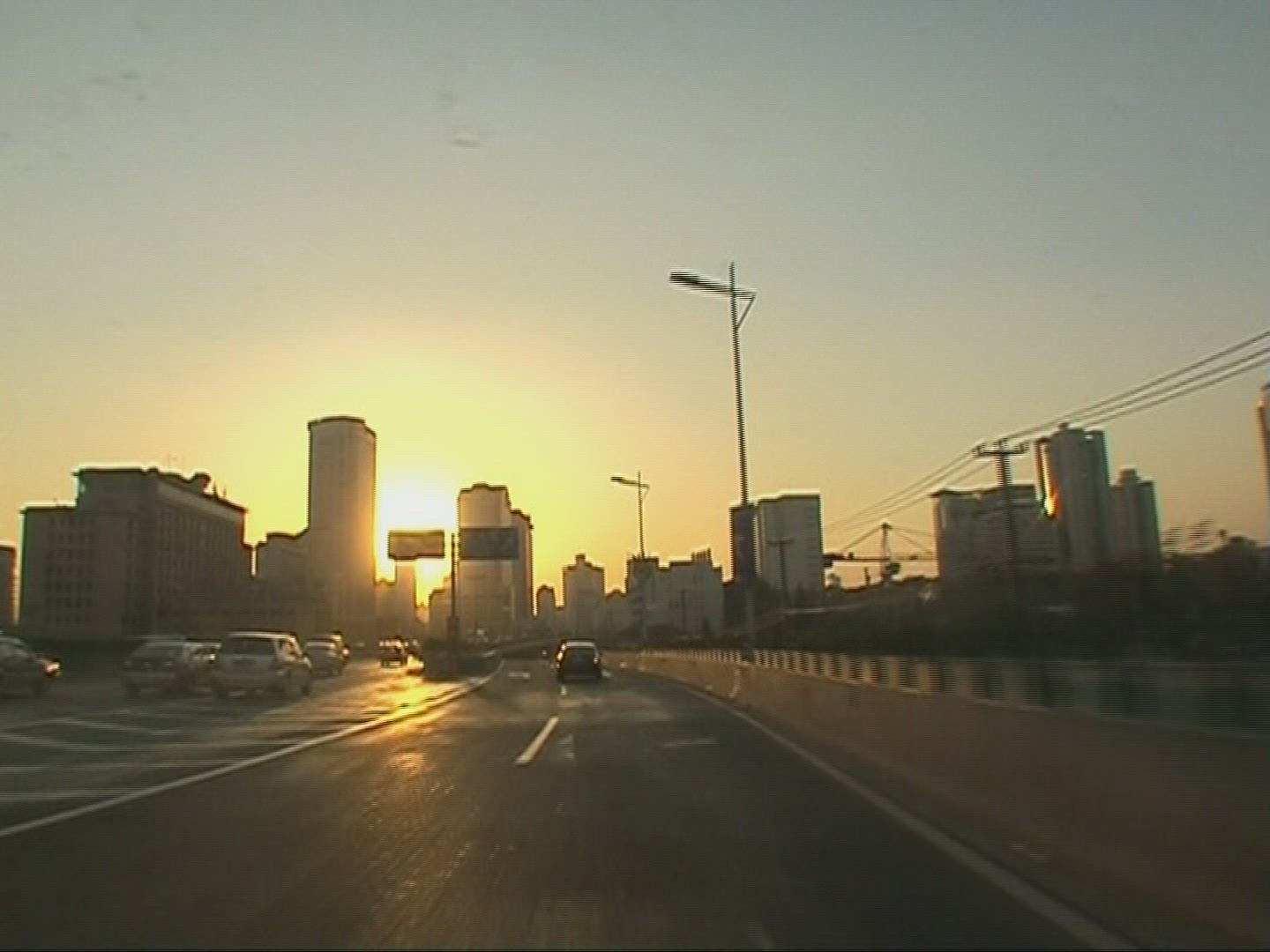 > POV driving Oriental Pearl Tower Skyscrapers Financial Shanghai China