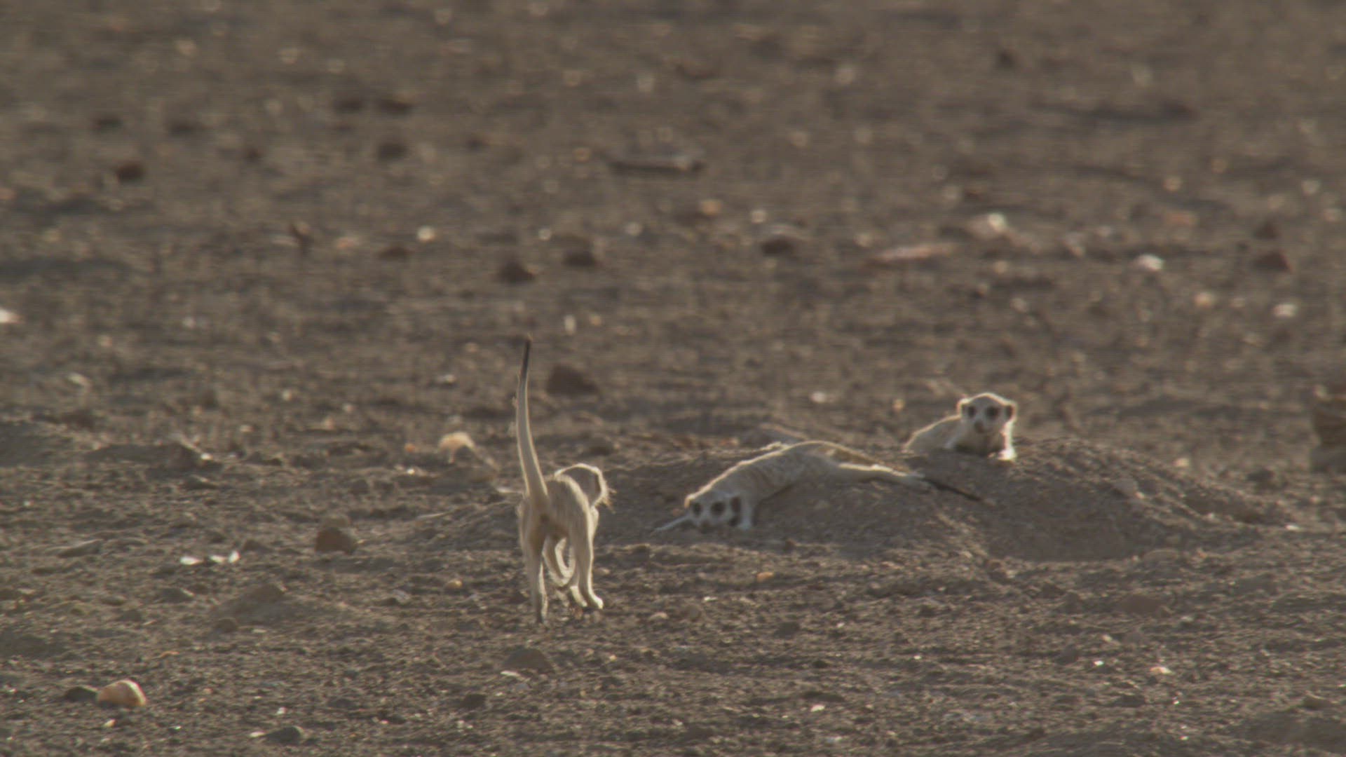MS Meerkat (Suricata suricatta) scratching and looking around / Namibia