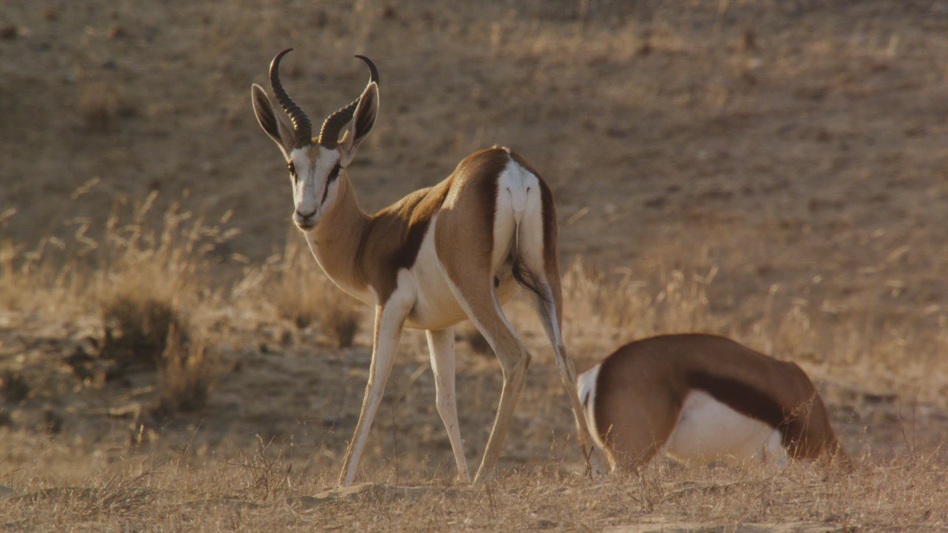 WS Two Springboks (Antidorcas marsupialis) in desert / Namibia