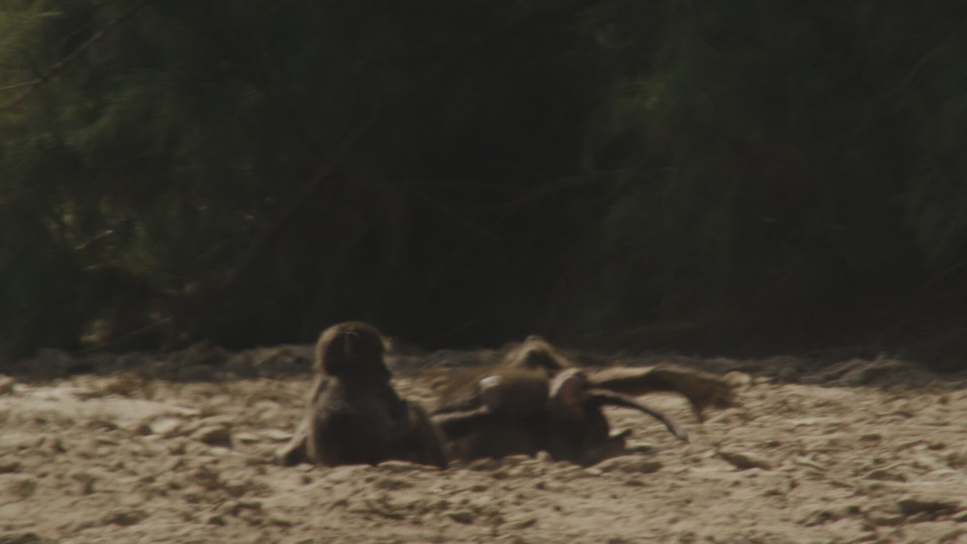 WS PAN Chacma baboons (Papio ursinus) playing in wild / Namibia