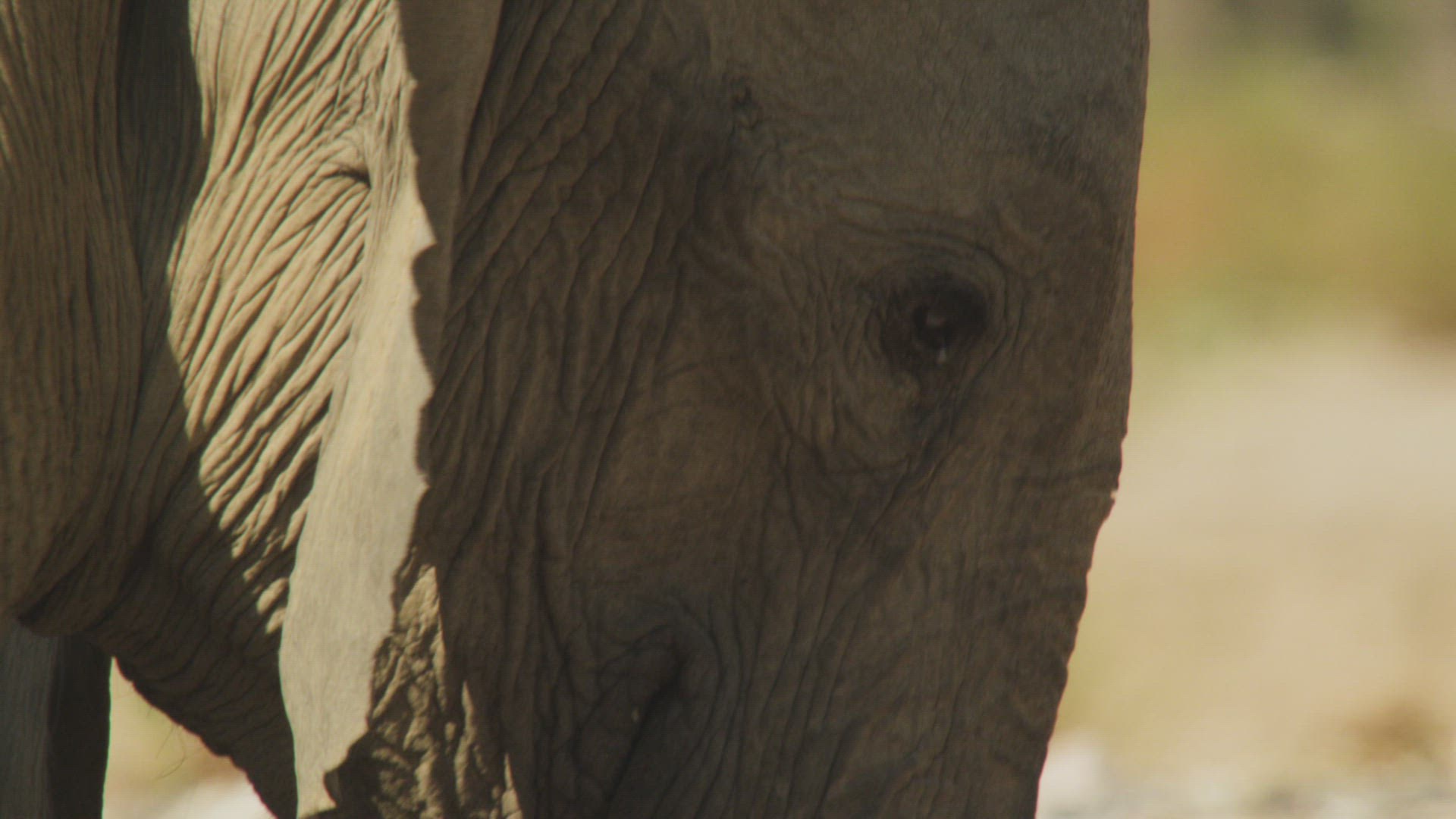 CU TD SELECTIVE FOCUS Close-up of elephant's (Loxodonta africana) head and trunk / Namibia