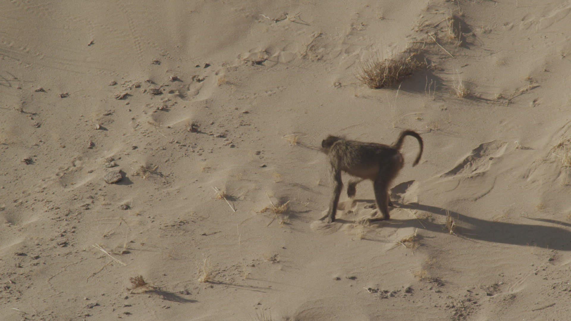 WS TS SLO MO HA Chacma baboons (Papio ursinus) running in sand / Namibia