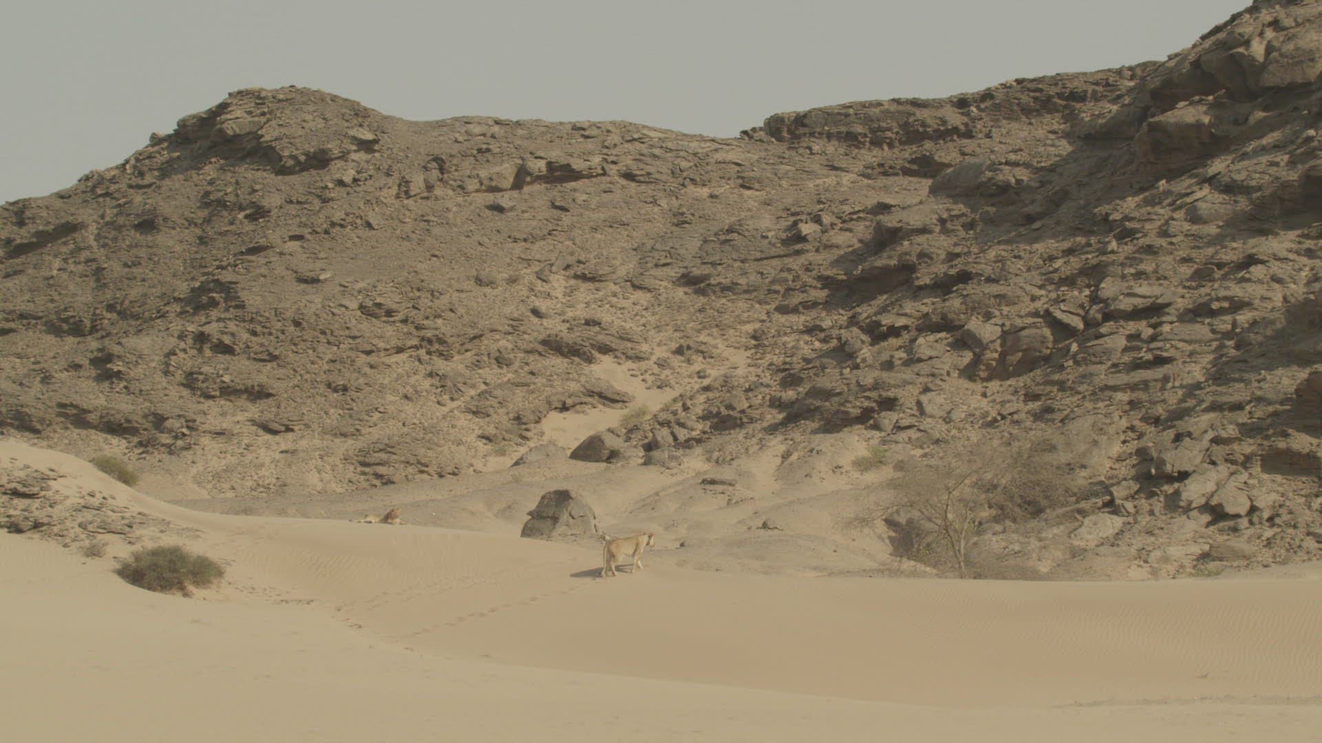 WS Two Lionesses (Panthera Leo) on desert / Namibia