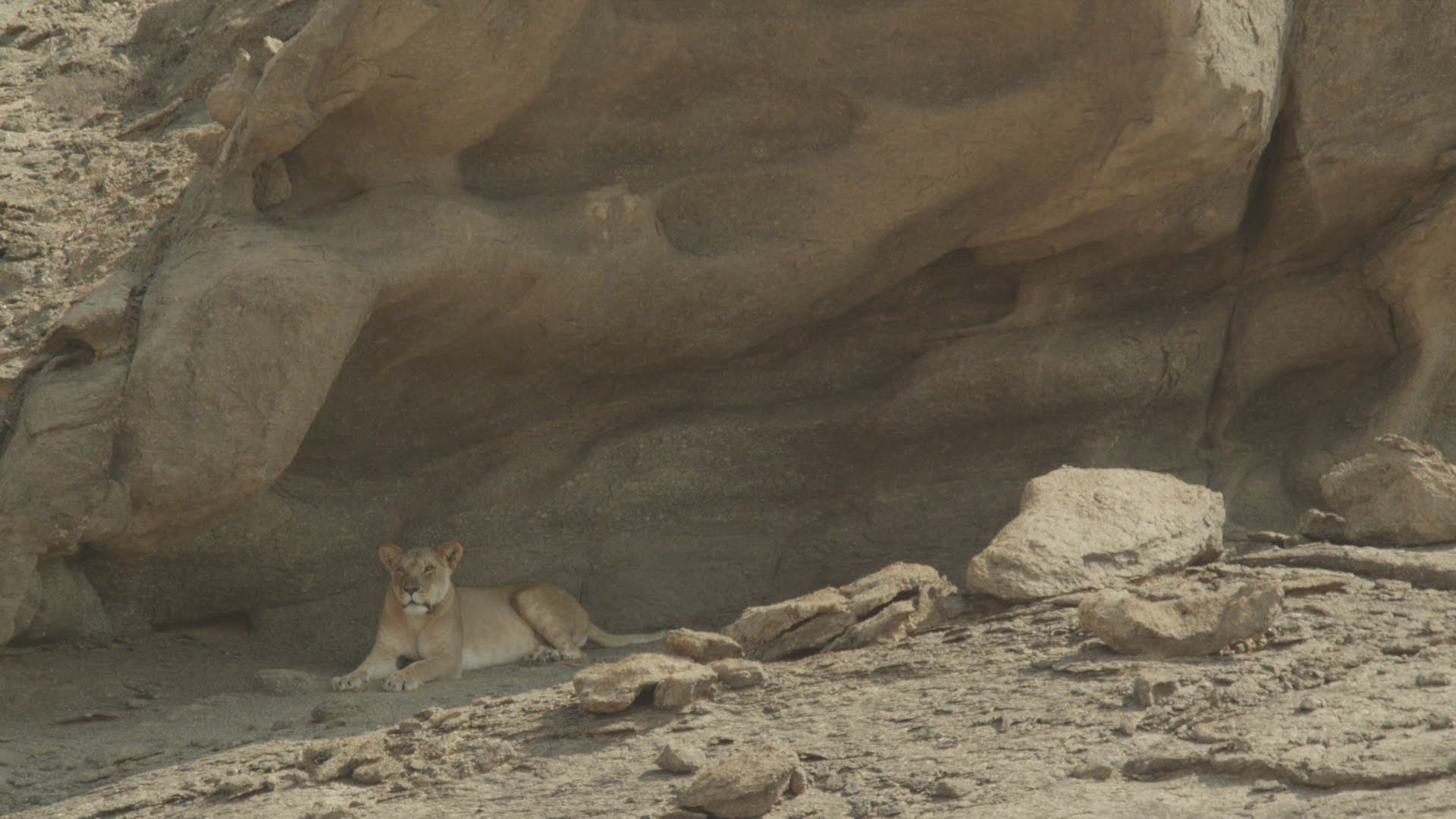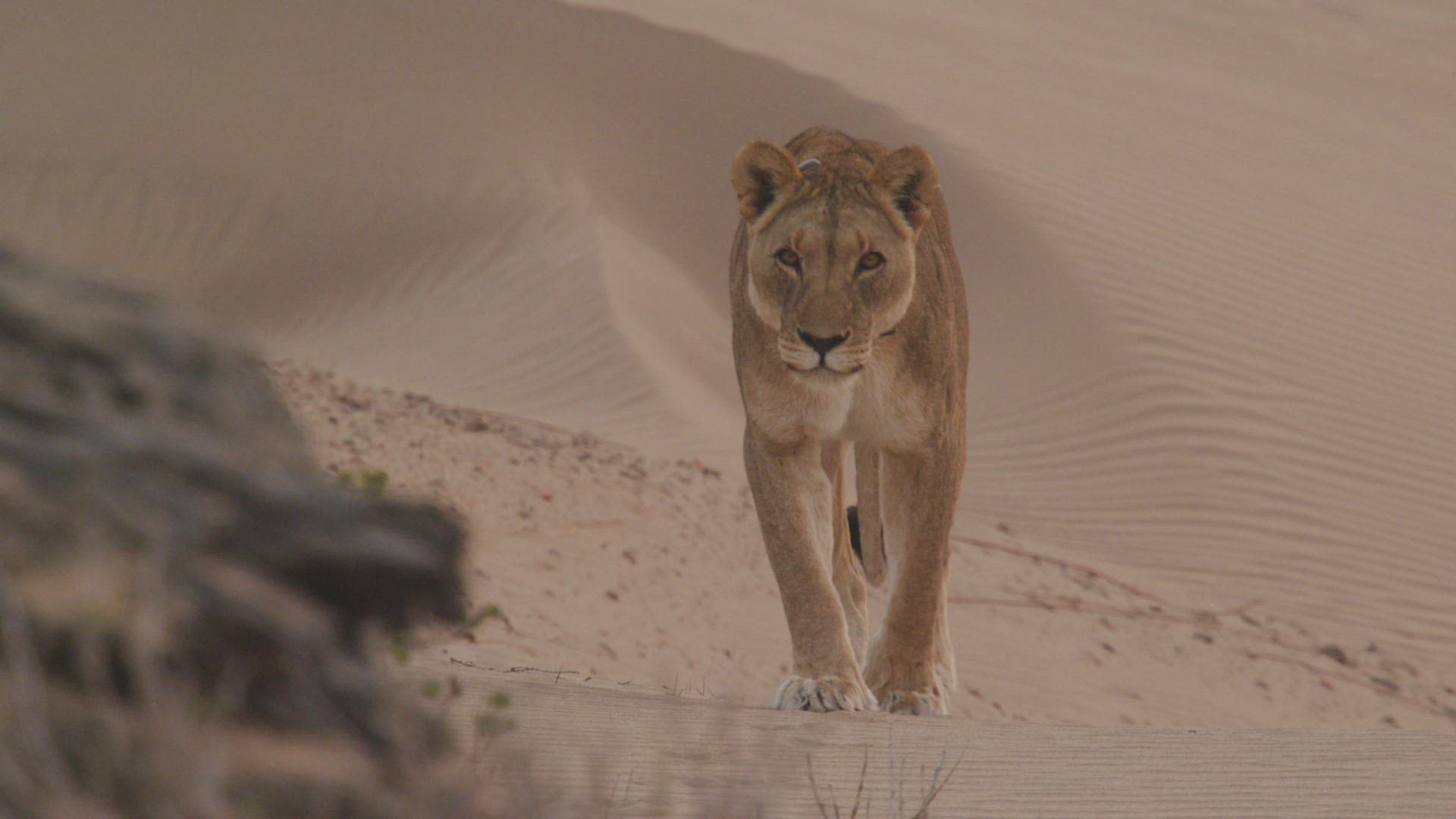 WS Lioness (Panthera Leo) walking on desert / Namibia