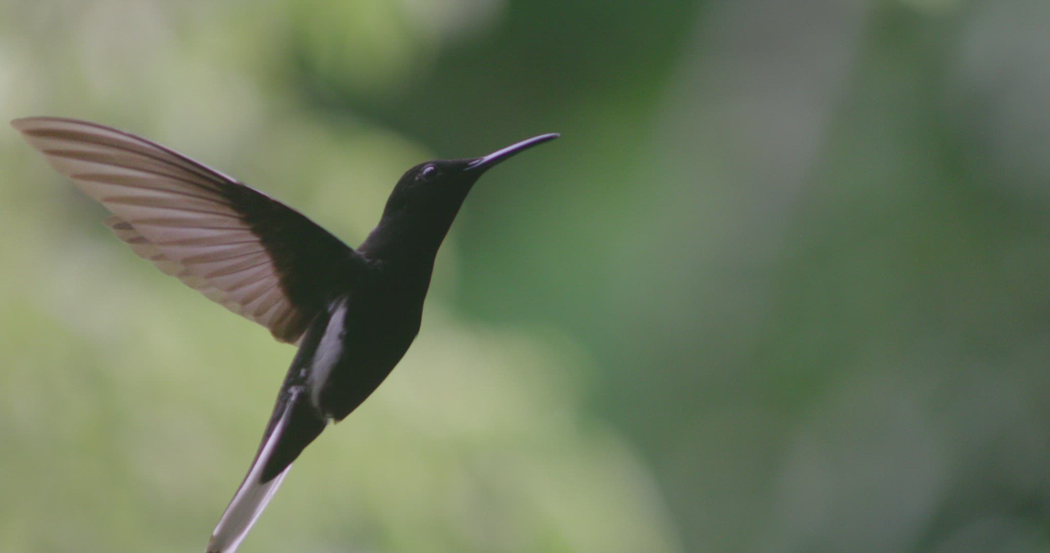 MS SLO MO Black jacobin (Florisuga fusca) flying / Rio de Janeiro; Brazil