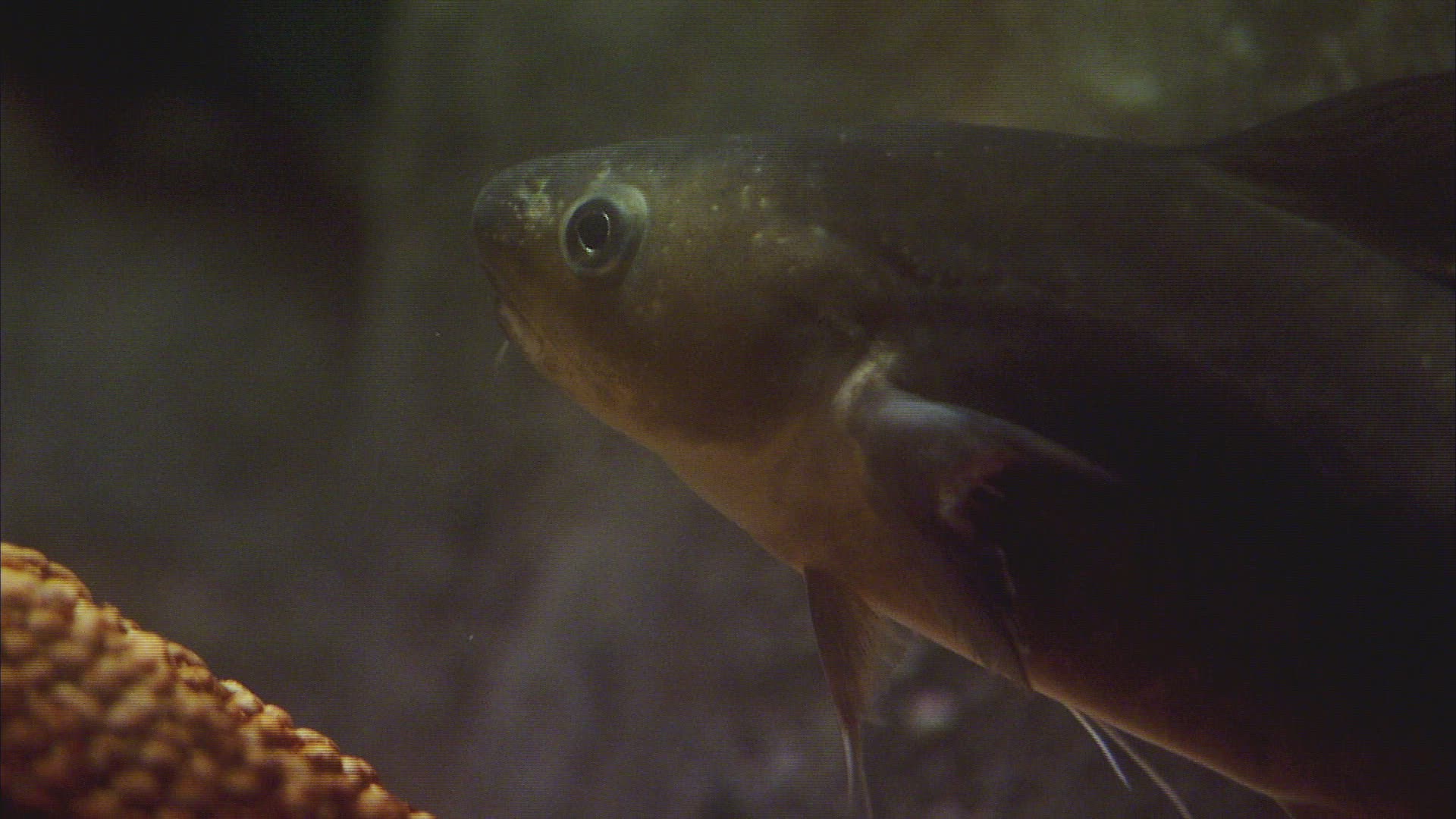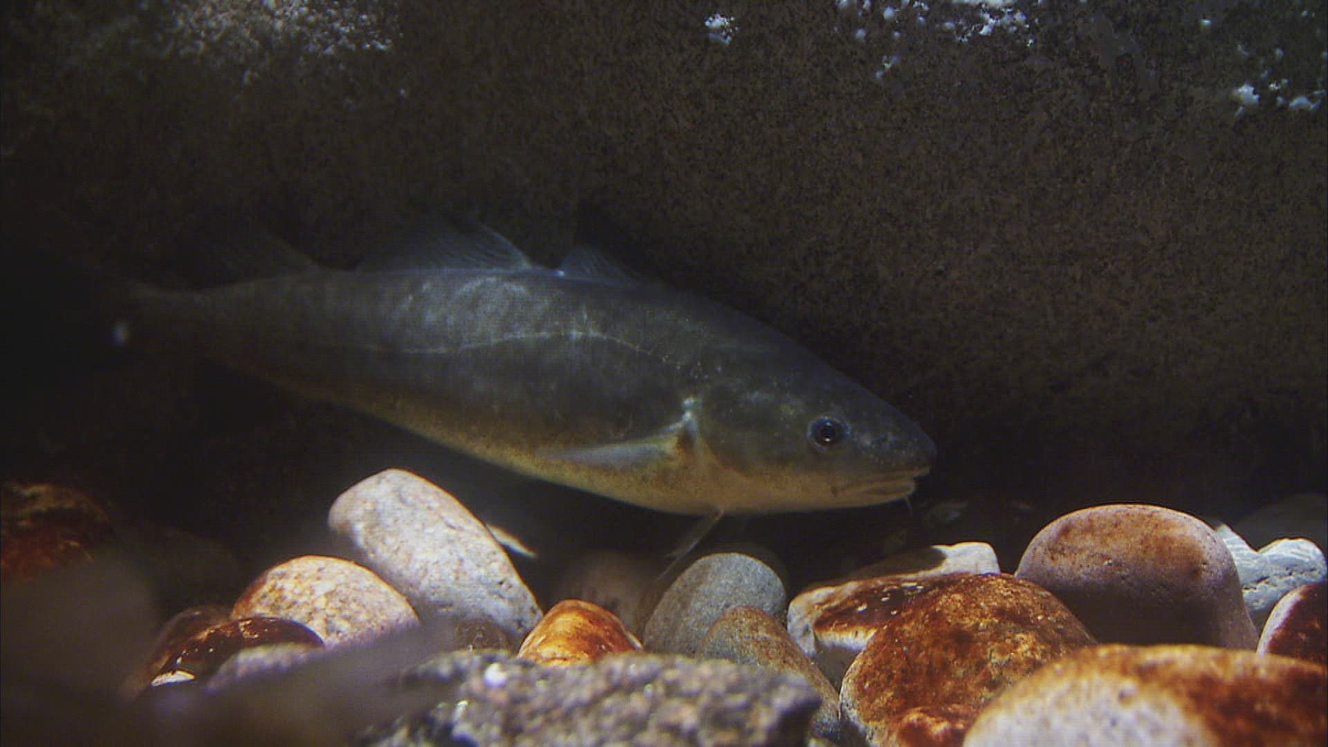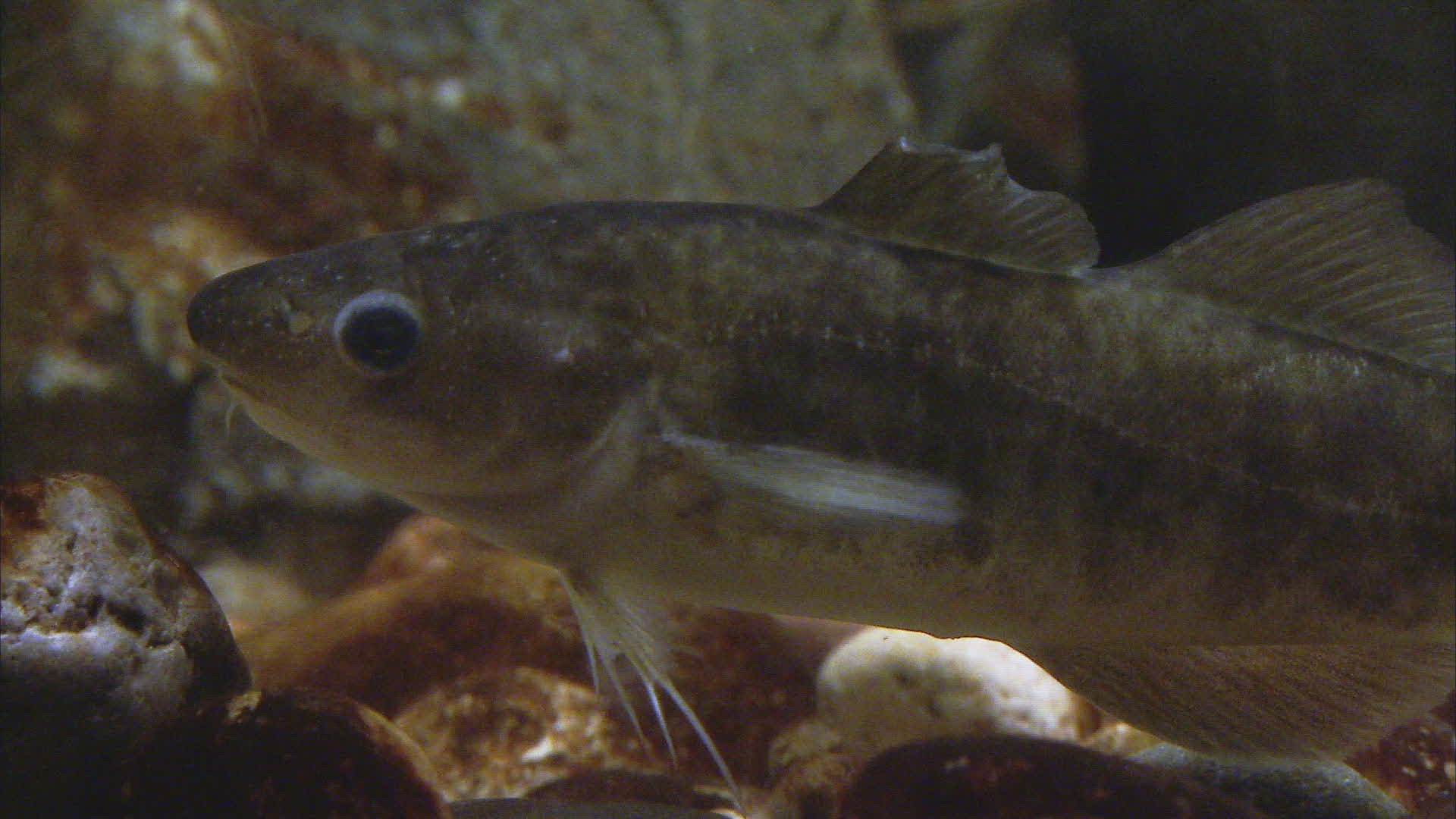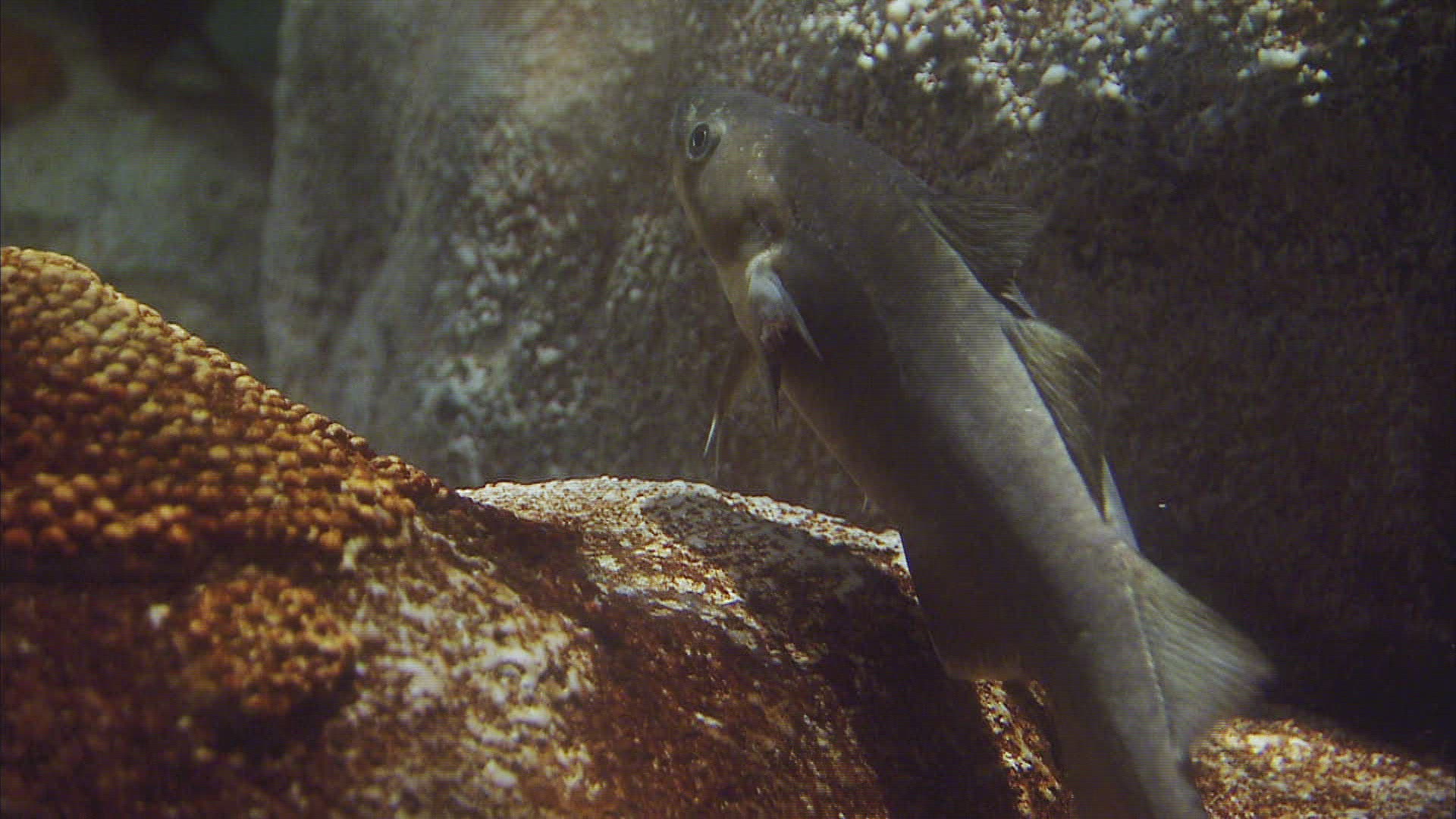 MS SELECTIVE FOCUS Tomcods (Microgadus tomcod) swimming in aquarium; The Maritime Aquarium / Norwalk; Connecticut; USA