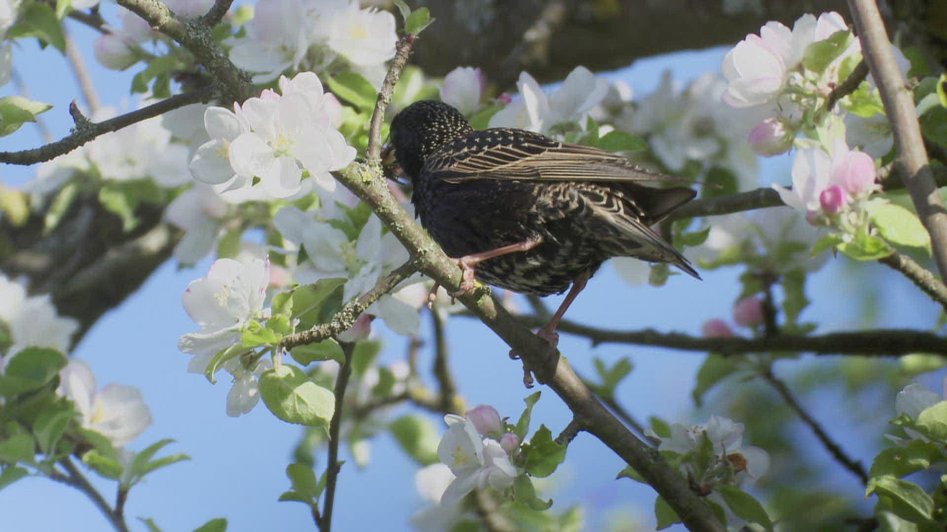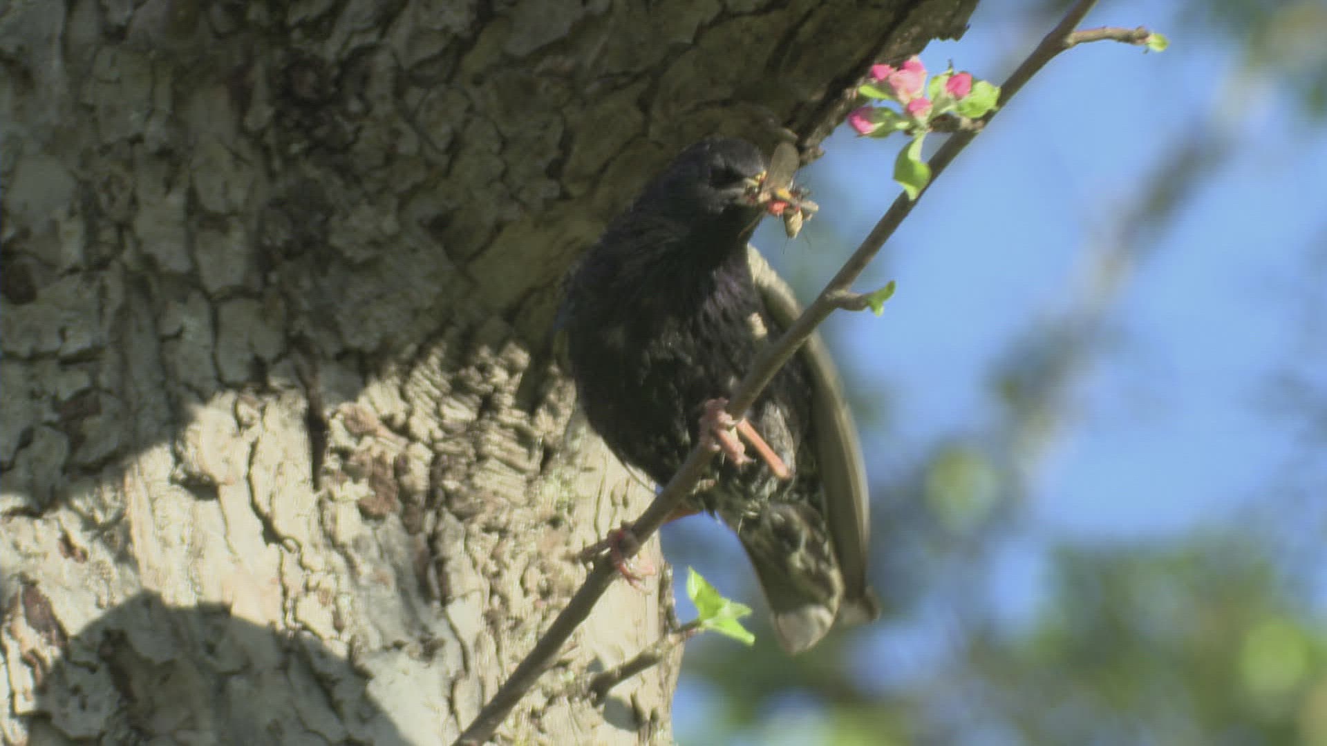 CU Person feeding Starling (Sturnis vulgaris) / Vienna; Austria